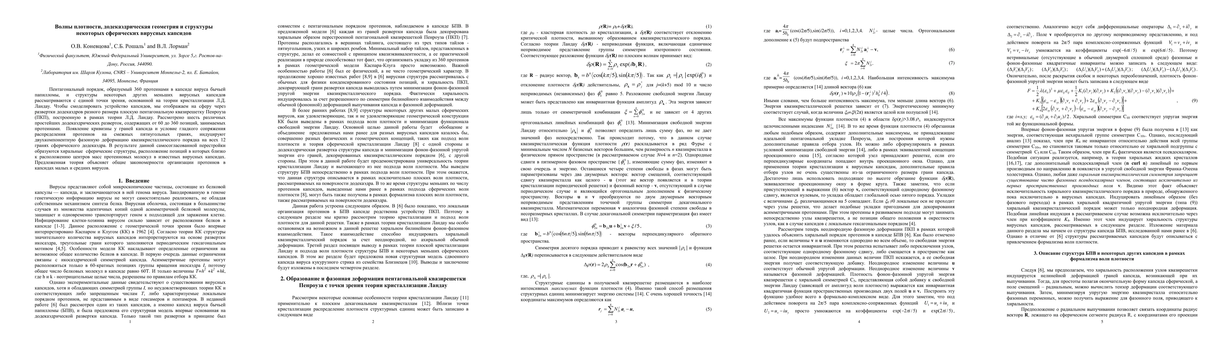 This paper uses Landau crystallization theory to model the structures of spherical viral capsids, mapping a planar pentagonal Penrose quasilattice onto a sphere via dodecahedron nets. The study results in a two-component phason strain field that accurately describes the quasicrystalline order in viral capsids, explaining the organization of proteins in small and medium-sized viruses.