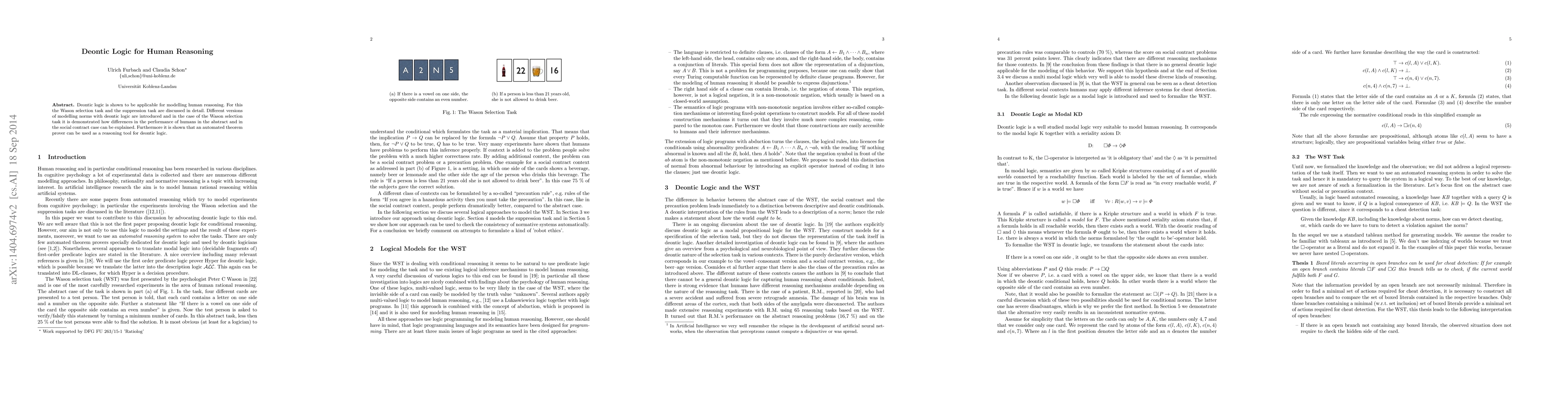 This paper demonstrates the applicability of deontic logic in modeling human reasoning, particularly through the Wason selection task and suppression task. It explores various norms modeled with deontic logic and uses an automated theorem prover to explain performance differences in abstract versus social contract scenarios.