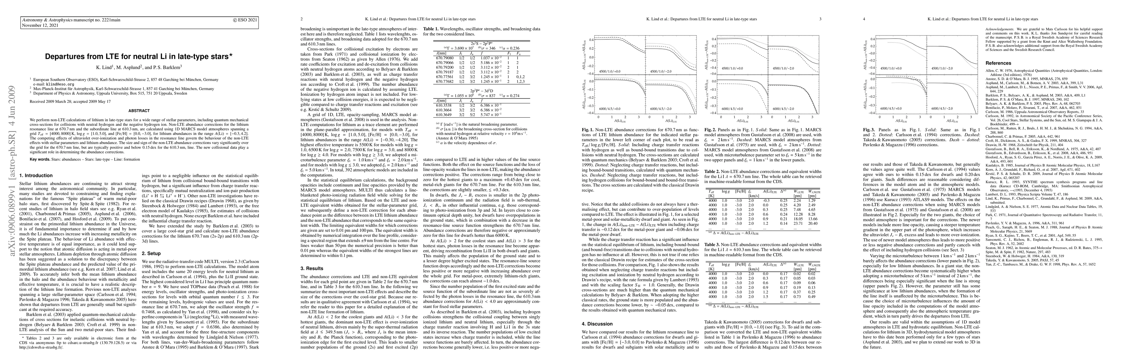 The paper presents new non-LTE abundance corrections for lithium lines in late-type stars using quantum mechanical collisional cross-sections.