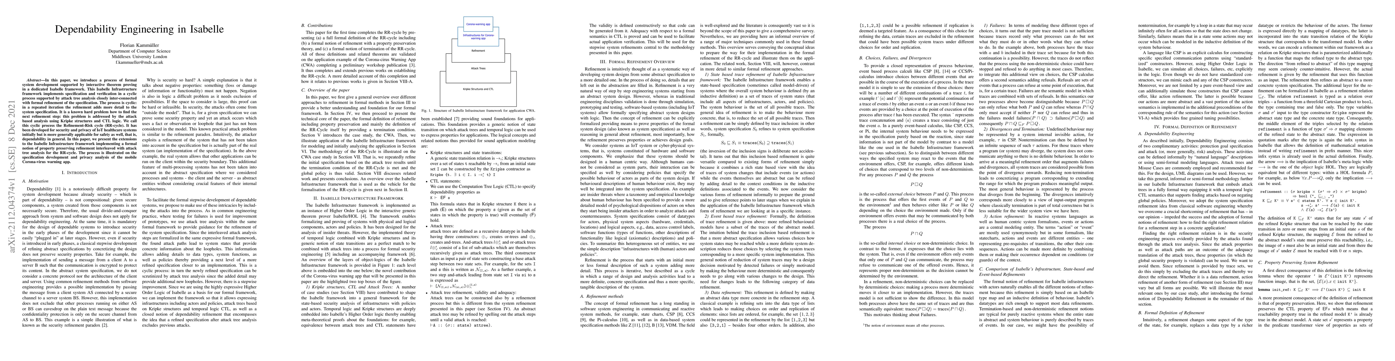 In this paper, we introduce a process of formal system development supported by interactive theorem proving in a dedicated Isabelle framework. This Isabelle Infrastructure framework implements specification and verification in a cyclic process supported by attack tree analysis closely inter-connected with formal refinement of the specification. The process is cyclic: in a repeated iteration the refinement adds more detail to the system specification. It is a known hard problem how to find the next refinement step: this problem is addressed by the attack based analysis using Kripke structures and CTL logic. We call this cyclic process the Refinement-Risk cycle (RR-cycle). It has been developed for security and privacy of IoT healthcare systems initially but is more generally applicable for safety as well, that is, dependability in general. In this paper, we present the extensions to the Isabelle Infrastructure framework implementing a formal notion of property preserving refinement interleaved with attack tree analysis for the RR-cycle. The process is illustrated on the specification development and privacy analysis of the mobile Corona-virus warning app.