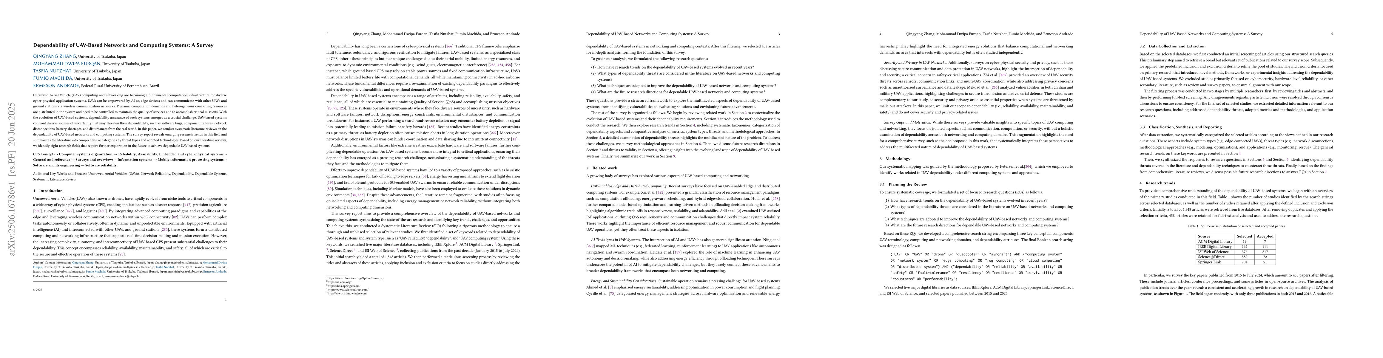 This paper conducts a systematic literature review on the dependability of UAV-based networks and computing systems, categorizing research into eight identified fields requiring further exploration.
