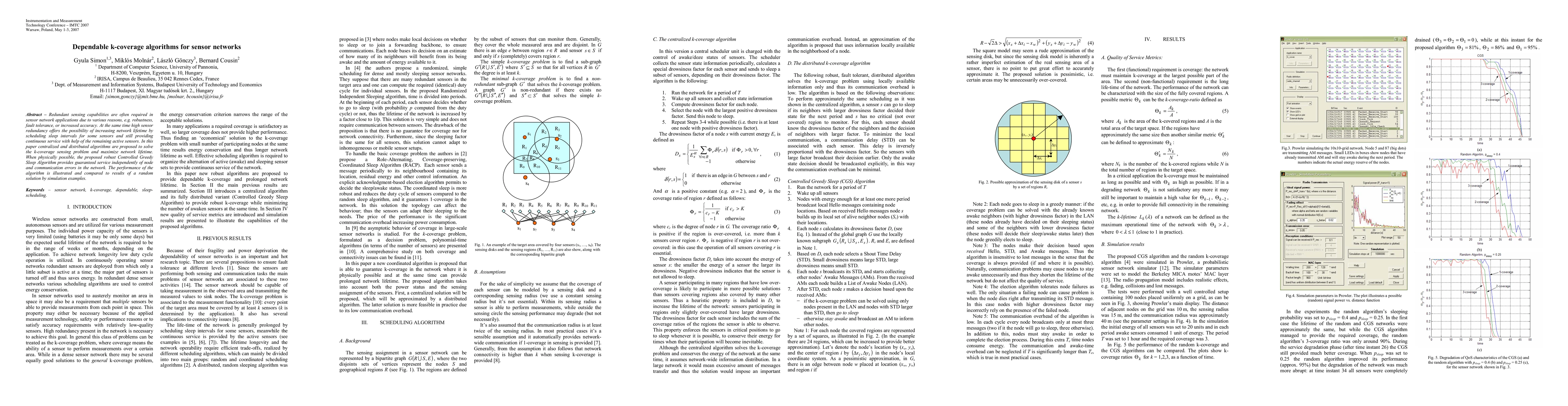 This paper proposes centralized and distributed algorithms to solve the k-coverage problem in sensor networks, aiming to maximize network lifetime through redundancy. The Controlled Greedy Sleep Algorithm ensures dependable service even with node and communication errors, and its performance is demonstrated through simulations comparing it to random solutions.