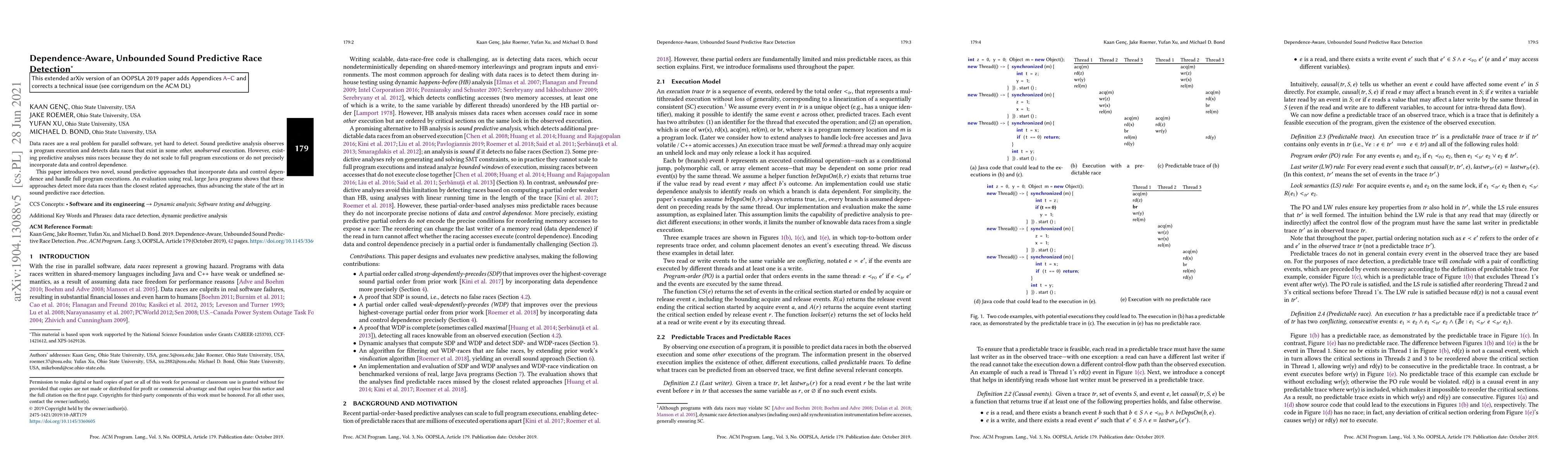 This paper presents two novel sound predictive race detection methods that incorporate data and control dependence, enabling them to handle full program executions. Evaluations on large Java programs demonstrate that these approaches detect more data races than existing methods, advancing the state of the art in predictive race detection.