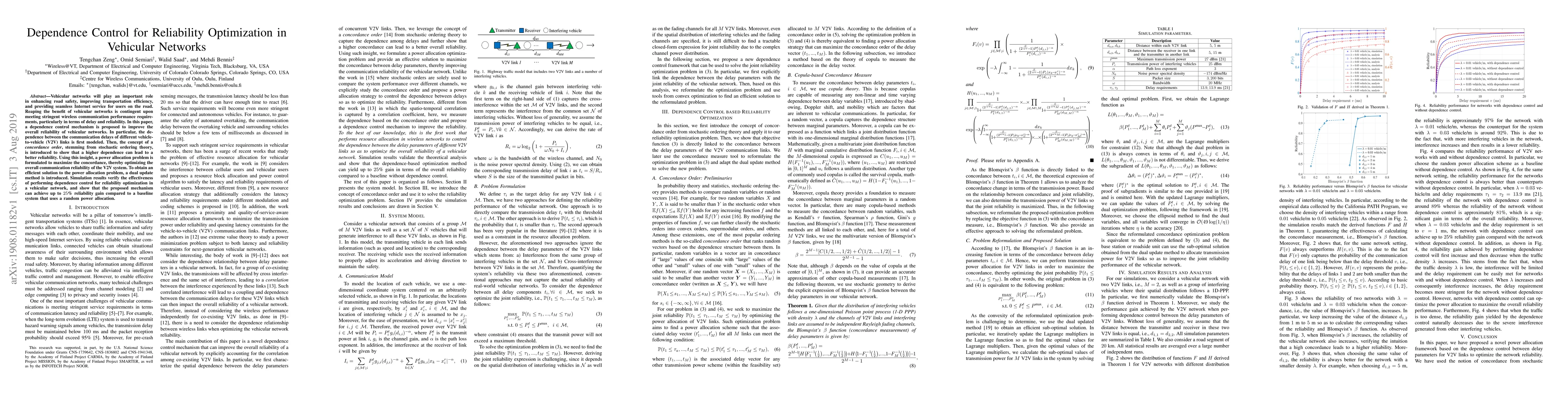 A new dependence control mechanism is proposed to improve reliability in vehicular networks by modeling and optimizing communication delays between vehicles. This approach can achieve up to 25% reliability gain compared to a baseline system.