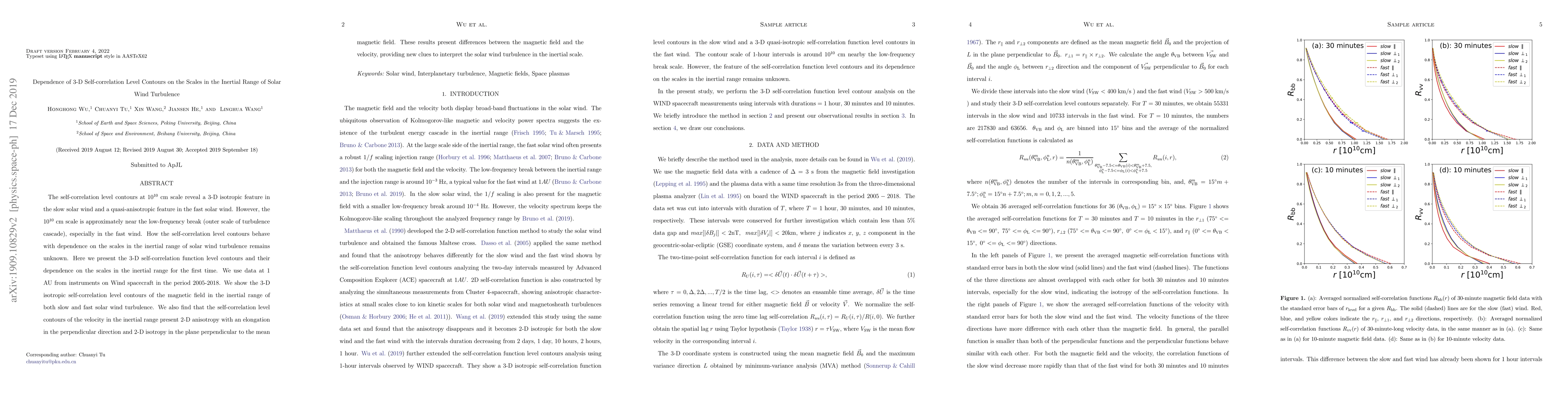 This study investigates the 3D self-correlation level contours of solar wind turbulence at scales in the inertial range, revealing that magnetic field contours are isotropic while velocity contours exhibit 2D anisotropy, offering insights into the differences between magnetic field and velocity correlations in slow and fast solar wind.