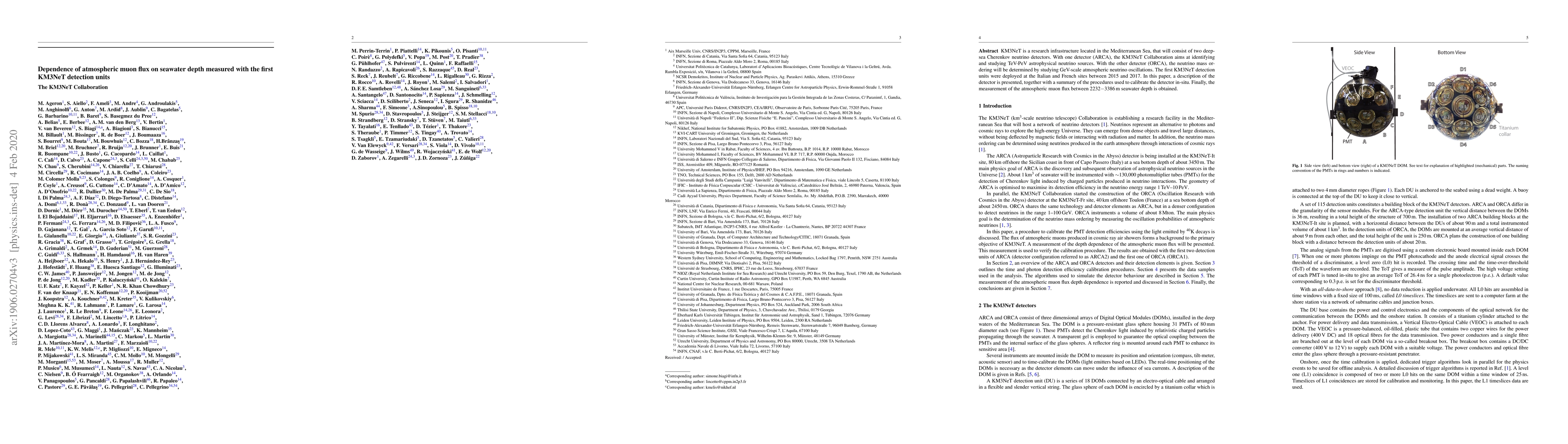 This paper details the deployment of the first KM3NeT detection units in the Mediterranean Sea and presents a measurement of atmospheric muon flux at depths between 2232-3386 meters. The study focuses on calibration procedures and provides insights into the dependence of muon flux on seawater depth.