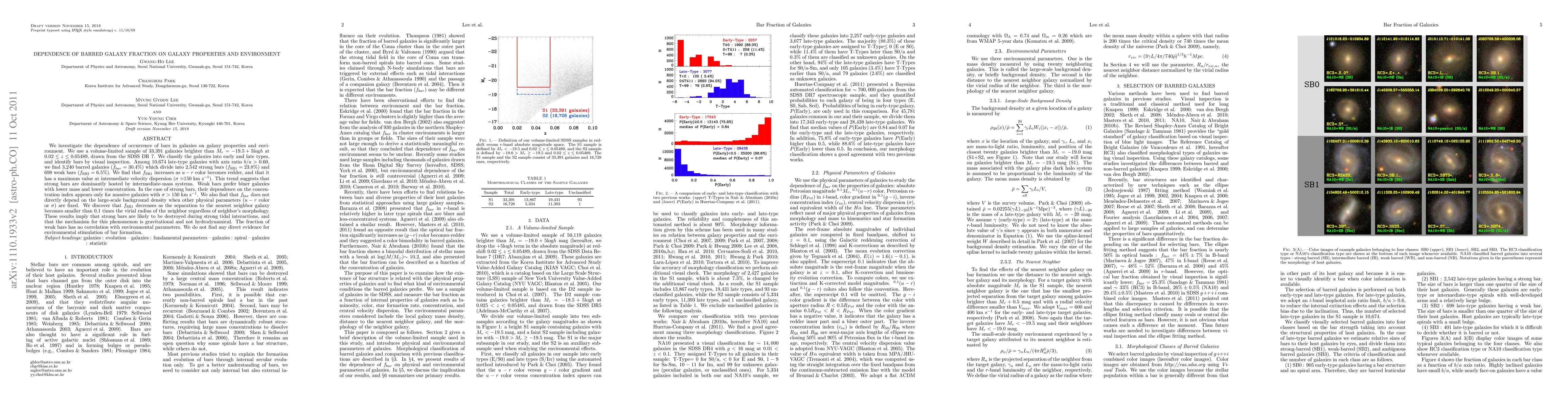 We investigate the dependence of occurrence of bars in galaxies on galaxy properties and environment. We use a volume-limited sample of 33,391 galaxies brighter than $M_{r}=-19.5+5$log$h$ at $0.02\le z\le0.05489$, drawn from the SDSS DR 7. We classify the galaxies into early and late types, and identify bars by visual inspection. Among 10,674 late-type galaxies with axis ratio $b/a>0.60$, we find 3,240 barred galaxies ($f_{bar}=30.4%$) which divide into 2,542 strong bars ($f_{SB1}=23.8%$) and 698 weak bars ($f_{SB2}=6.5%$). We find that $f_{SB1}$ increases as $u-r$ color becomes redder, and that it has a maximum value at intermediate velocity dispersion ($\sigma\simeq$150 km s$^{-1}$). This trend suggests that strong bars are dominantly hosted by intermediate-mass systems. Weak bars prefer bluer galaxies with lower mass and lower concentration. In the case of strong bars, their dependence on the concentration index appears only for massive galaxies with $\sigma>150$ km s$^{-1}$. We also find that $f_{bar}$ does not directly depend on the large-scale background density when other physical parameters ($u-r$ color or $\sigma$) are fixed. We discover that $f_{SB1}$ decreases as the separation to the nearest neighbor galaxy becomes smaller than 0.1 times the virial radius of the neighbor regardless of neighbor's morphology. These results imply that strong bars are likely to be destroyed during strong tidal interactions, and that the mechanism for this phenomenon is gravitational and not hydrodynamical. The fraction of weak bars has no correlation with environmental parameters. We do not find any direct evidence for environmental stimulation of bar formation.
