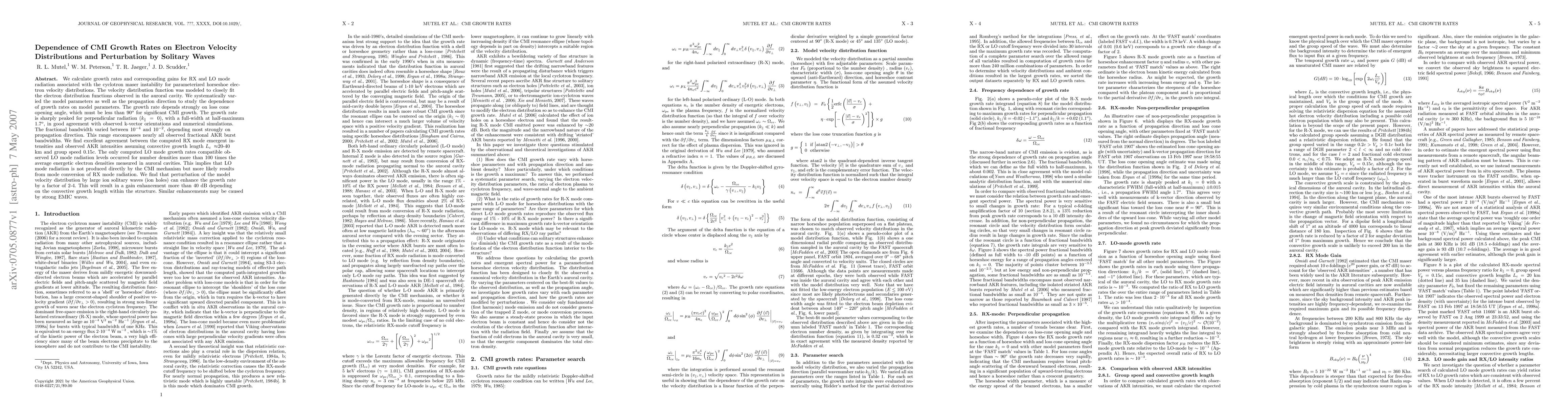 We calculate growth rates and corresponding gains for RX and LO mode radiation associated with the cyclotron maser instability for parameterized horseshoe electron velocity distributions. The velocity distribution function was modeled to closely fit the electron distribution functions observed in the auroral cavity. We systematically varied the model parameters as well as the propagation direction to study the dependence of growth rates on model parameters. The growth rate depends strongly on loss cone opening angle, which must be less than $90^{o}$ for significant CMI growth. The growth rate is sharply peaked for perpendicular radiation ($k_{\parallel} = 0$), with a full-width at half-maximum $1.7^{o}$, in good agreement with observed k-vector orientations and numerical simulations. The fractional bandwidth varied between 10$^{-4}$ and 10$^{-2}$, depending most strongly on propagation direction. This range encompasses nearly all observed fractional AKR burst bandwidths. We find excellent agreement between the computed RX mode emergent intensities and observed AKR intensities assuming convective growth length $L_c\approx$20-40 km and group speed 0.15$c$. The only computed LO mode growth rates compatible observed LO mode radiation levels occurred for number densities more than 100 times the average energetic electron densities measured in auroral cavities. This implies that LO mode radiation is not produced directly by the CMI mechanism but more likely results from mode conversion of RX mode radiation. We find that perturbation of the model velocity distribution by large ion solitary waves (ion holes) can enhance the growth rate by a factor of 2-4. This will result in a gain enhancement more than 40 dB depending on the convective growth length within the structure. Similar enhancements may be caused by EMIC waves.