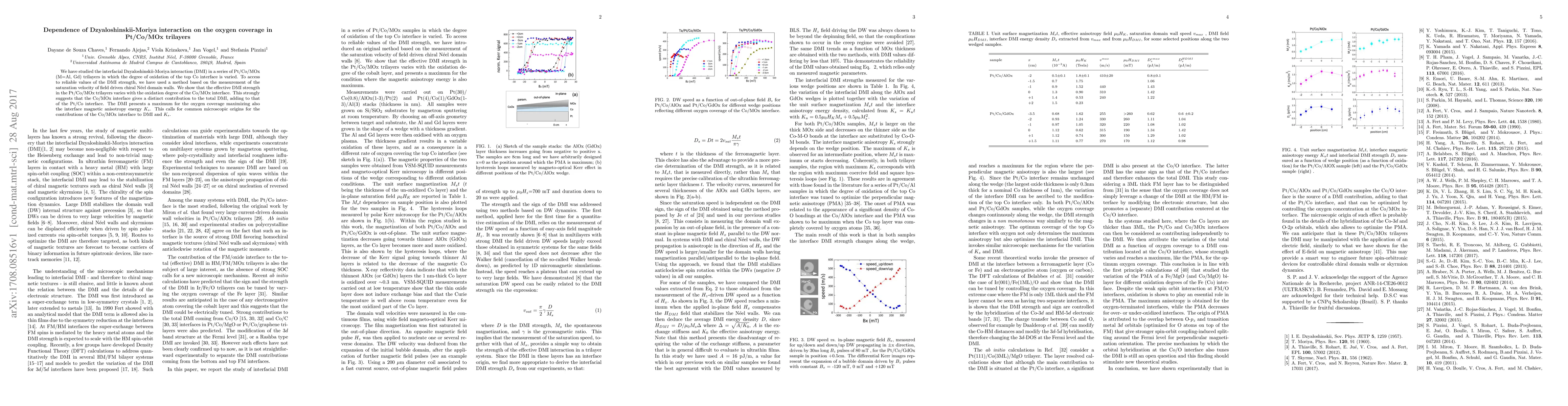 We have studied the interfacial Dzyaloshinskii-Moriya interaction (DMI) in a series of Pt/Co/MOx (M=Al, Gd) trilayers in which the degree of oxidation of the top Co interface is varied. To access to reliable values of the DMI strength, we have used a method based on the measurement of the saturation velocity of field driven chiral N\'eel domain walls. We show that the effective DMI strength in the Pt/Co/MOx trilayers varies with the oxidation degree of the Co/MOx interface. This strongly suggests that the Co/MOx interface gives a distinct contribution to the total DMI, adding to that of the Pt/Co interface. The DMI presents a maximum for the oxygen coverage maximizing also the interface magnetic anisotropy energy Ks. This calls for common microscopic origins for the contributions of the Co/MOx interface to DMI and Ks.