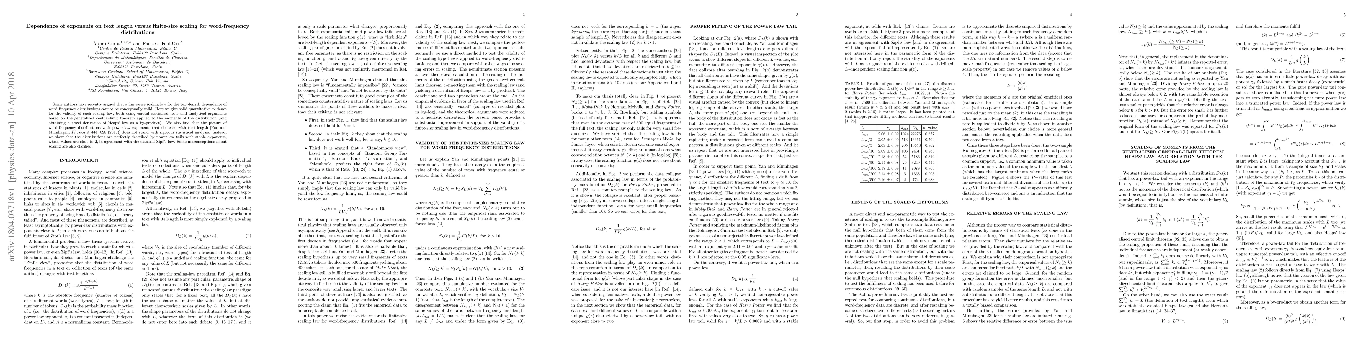 Research confirms the validity of a finite-size scaling law for word-frequency distributions, debunking previous misconceptions about power-law exponents decreasing with text length. The findings instead support stable exponents close to 2, agreeing with Zipf's law.