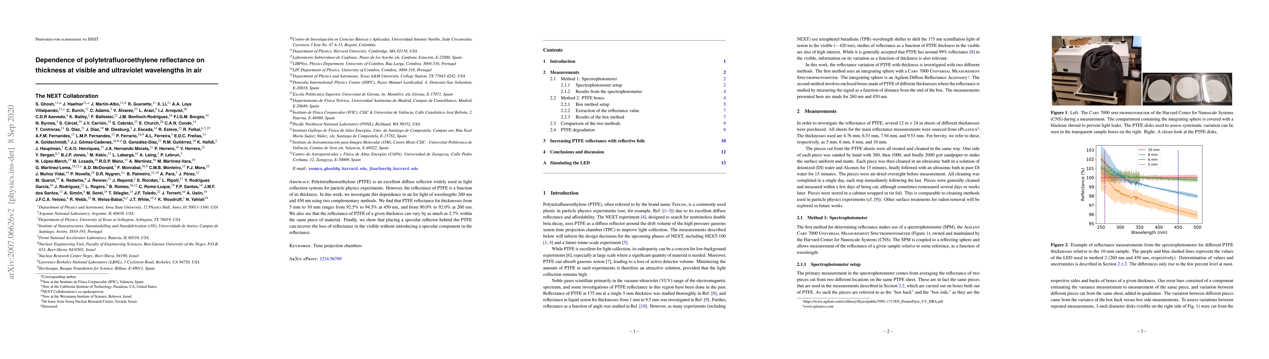This study investigates how the reflectance of PTFE varies with thickness at 260 nm and 450 nm wavelengths, finding it ranges from 90.0% to 94.5%. It also reveals that placing a specular reflector behind PTFE can recover lost reflectance in the visible spectrum without introducing a specular component.