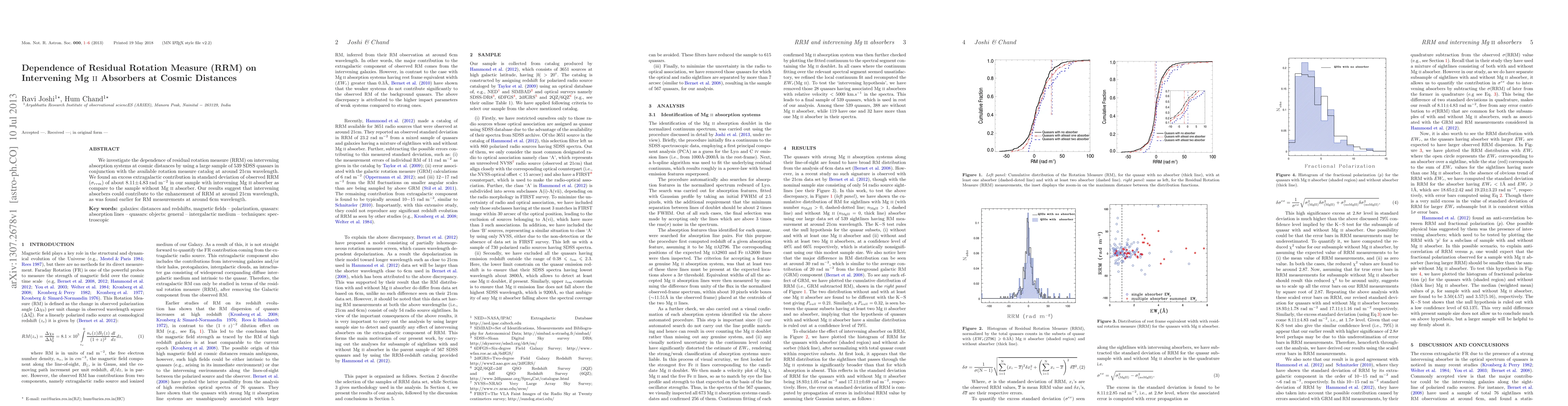 A study of 539 quasars found an excess extragalactic rotation measure contribution from intervening MgII absorbers, suggesting these systems enhance RRM at 21cm wavelength.