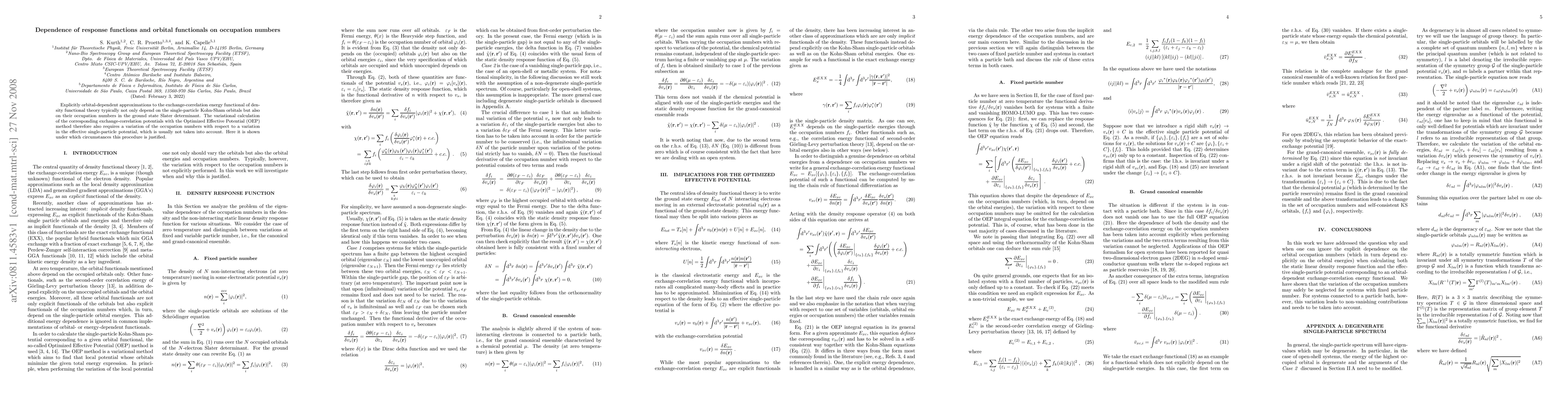 This paper investigates how orbital-dependent approximations in density functional theory's exchange-correlation energy functional depend on orbital occupation numbers. It examines the necessity of varying occupation numbers when calculating exchange-correlation potentials using the Optimized Effective Potential method.