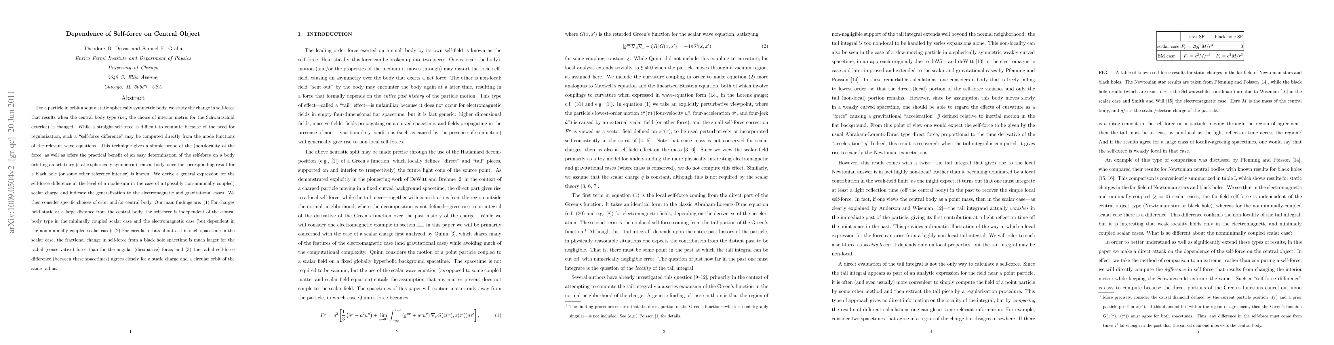 This paper investigates how the self-force acting on a particle in orbit around a static spherically symmetric body varies with the type of central object. It finds that self-forces are independent of the central body type for static charges in minimally coupled scalar and electromagnetic cases, except for nonminimally coupled scalars. It also reveals significant differences in radial versus angular self-forces for circular orbits around thin-shell spacetimes, with radial forces showing larger changes.