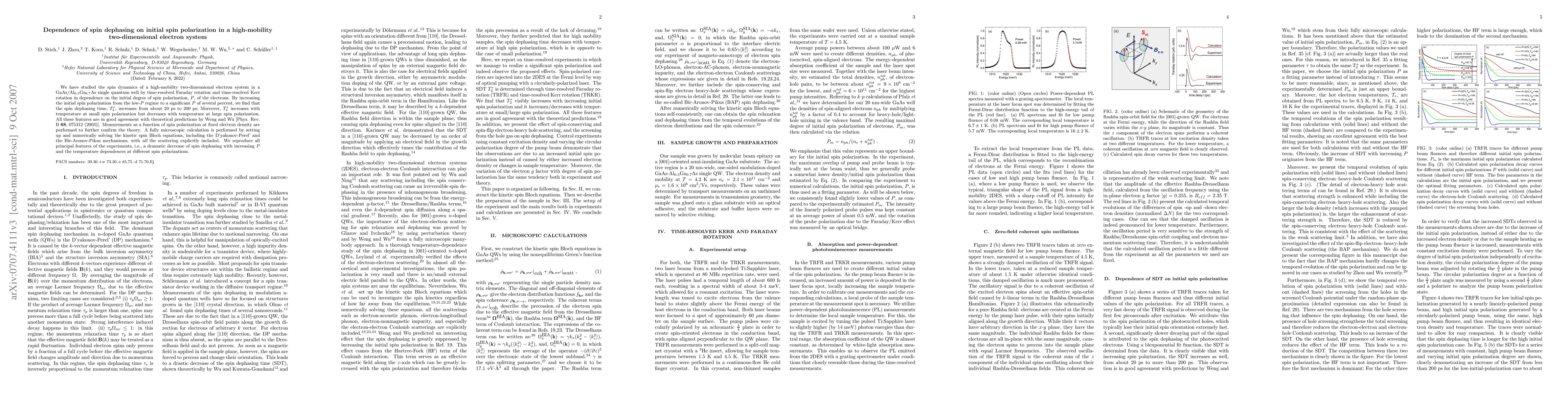This study investigates the spin dynamics in a high-mobility 2D electron system using time-resolved Faraday and Kerr rotations, revealing that spin dephasing time increases with higher initial spin polarization and exhibits temperature-dependent behavior. Theoretical predictions and microscopic calculations confirm the experimental observations.