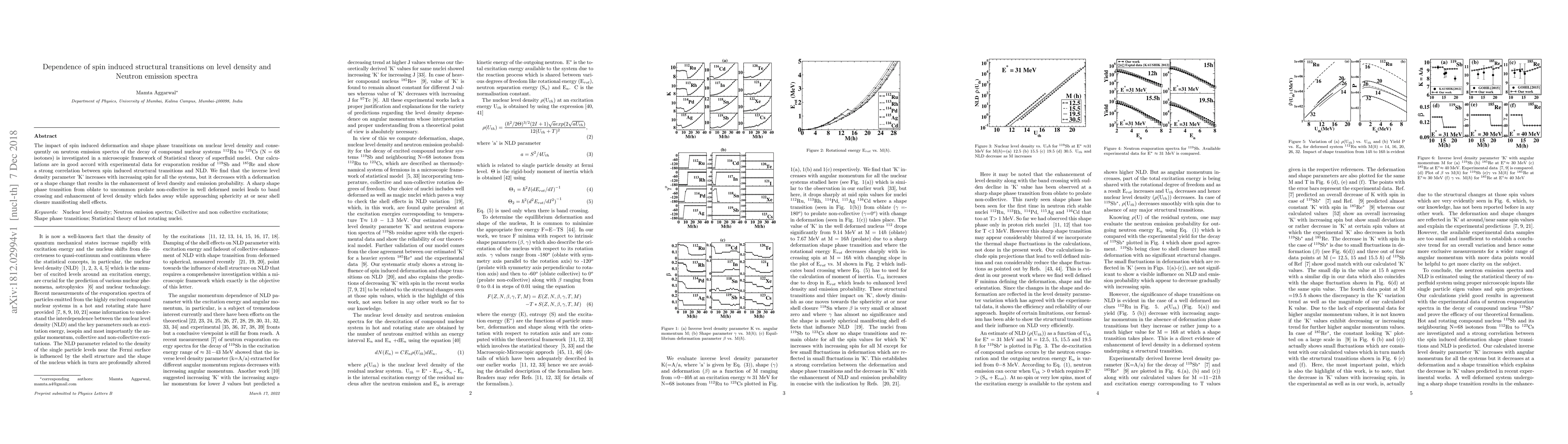 This research investigates how spin-induced deformation and shape phase transitions affect nuclear level density and neutron emission spectra in nuclei from 112^Ru to 123^Cs. The study finds a strong correlation between spin-induced structural transitions and nuclear level density, showing that the inverse level density parameter K increases with spin but decreases with deformation or shape changes that enhance level density.