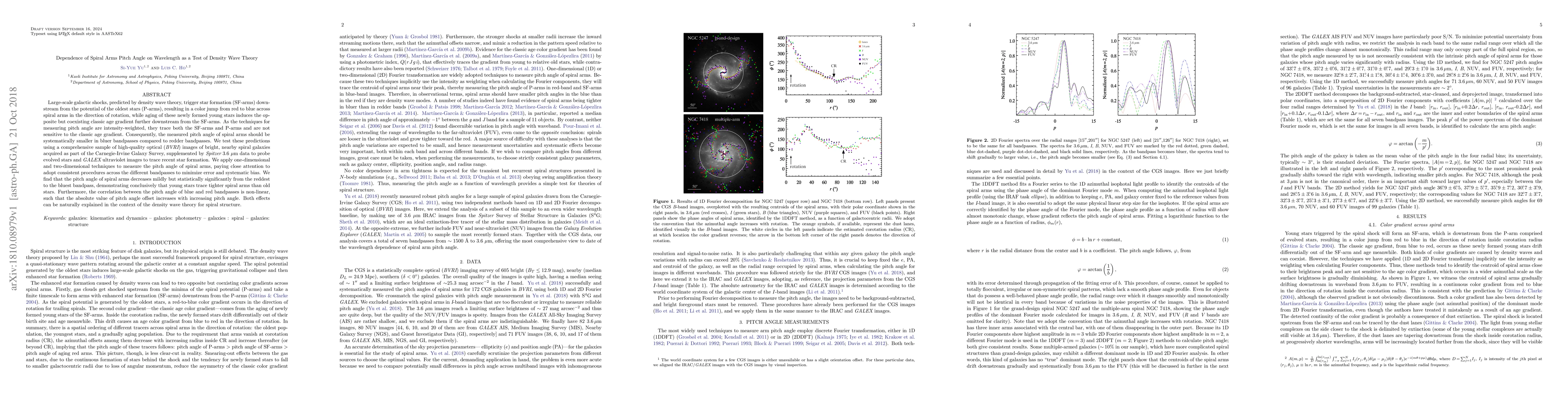 This research investigates the dependence of spiral arms' pitch angle on wavelength as a test of density wave theory, finding that younger stars trace tighter spiral arms than older stars. Using optical and ultraviolet images, the study demonstrates a statistically significant decrease in pitch angle across bluer bandpasses compared to redder ones, supporting the density wave theory's predictions.