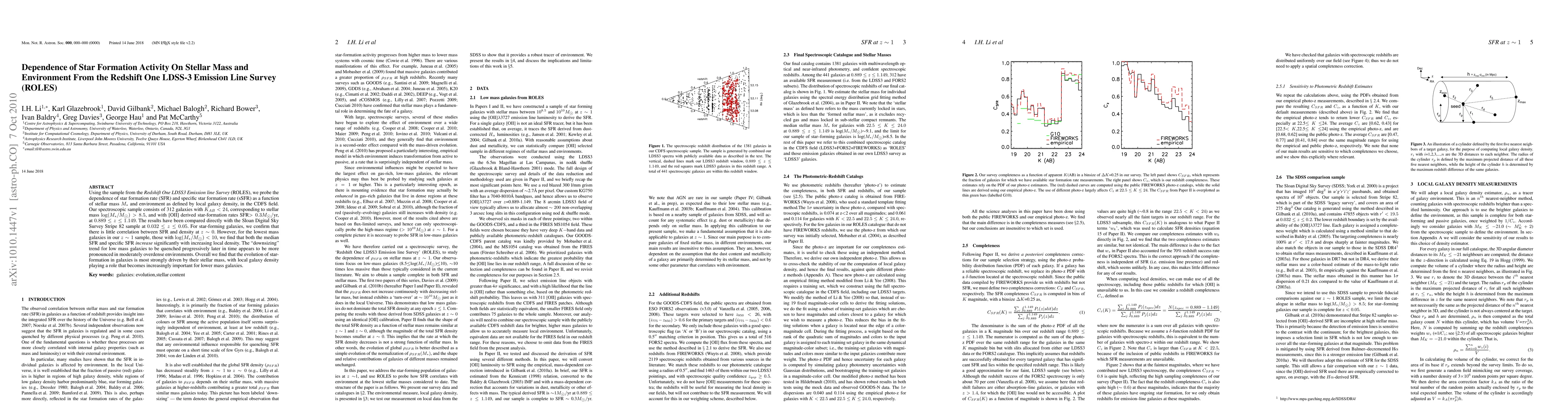 Using the sample from the \it Redshift One LDSS3 Emission line Survey \rm (ROLES), we probe the dependence of star formation rate (SFR) and specific star formation rate (sSFR) as a function of stellar mass $M_*$ and environment as defined by local galaxy density, in the CDFS field. Our spectroscopic sample consists of 312 galaxies with $K_{AB}<24$, corresponding to stellar mass $\log(M_*/M_{\sun})>8.5$, and with [OII] derived star-formation rates SFR$>0.3M_{\sun}/$yr, at $0.889\leq z \leq 1.149$. The results have been compared directly with the Sloan Digital Sky Survey Stripe 82 sample at $0.032\leq z \leq 0.05$. For star-forming galaxies, we confirm that there is little correlation between SFR and density at $z\sim 0$. However, for the lowest mass galaxies in our $z\sim 1$ sample, those with $\log(M_*/M_{\sun})<10$, we find that both the median SFR and specific SFR {\it increase} significantly with increasing local density. The "downsizing" trend for low mass galaxies to be quenched progressively later in time appears to be more pronounced in moderately overdense environments. Overall we find that the evolution of star-formation in galaxies is most strongly driven by their stellar mass, with local galaxy density playing a role that becomes increasingly important for lower mass galaxies.