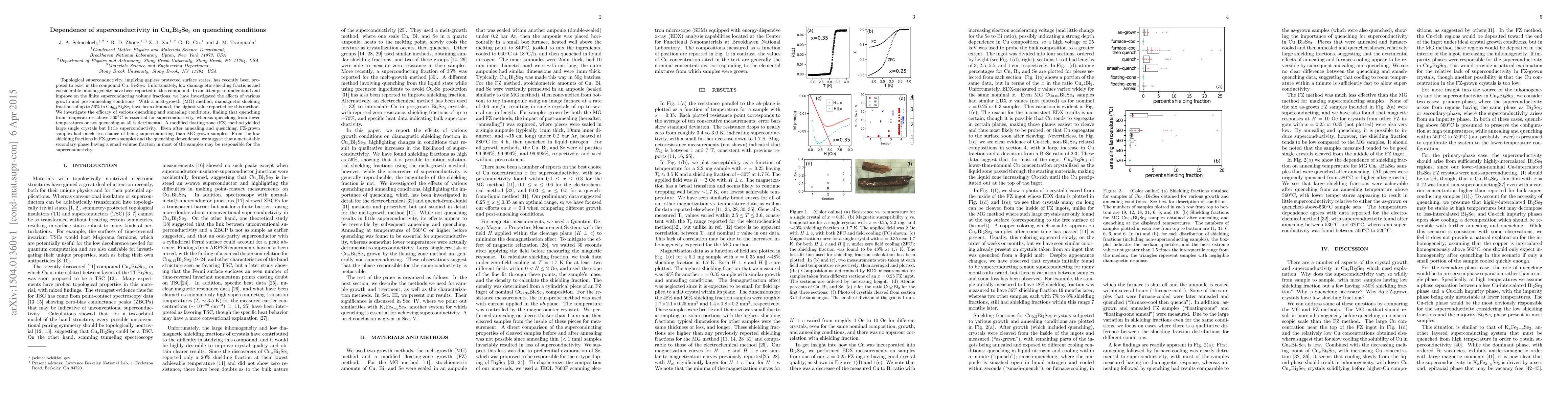 This paper investigates the influence of quenching conditions on superconductivity in CuxBi2Se3, finding that quenching from temperatures above 560°C is crucial for achieving high diamagnetic shielding fractions, while lower temperatures or no quenching hinders superconductivity. The melt-growth method yielded better results than the floating zone method.