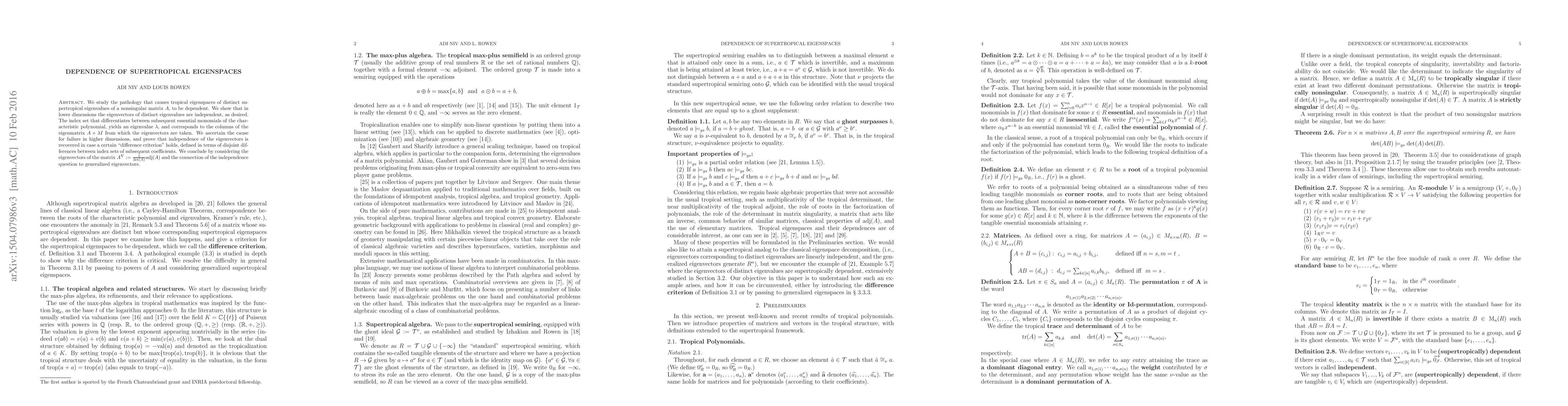 Researchers investigate why eigenspaces of distinct supertropical eigenvalues in matrices may become dependent, finding a 'difference criterion' that restores independence in higher dimensions.