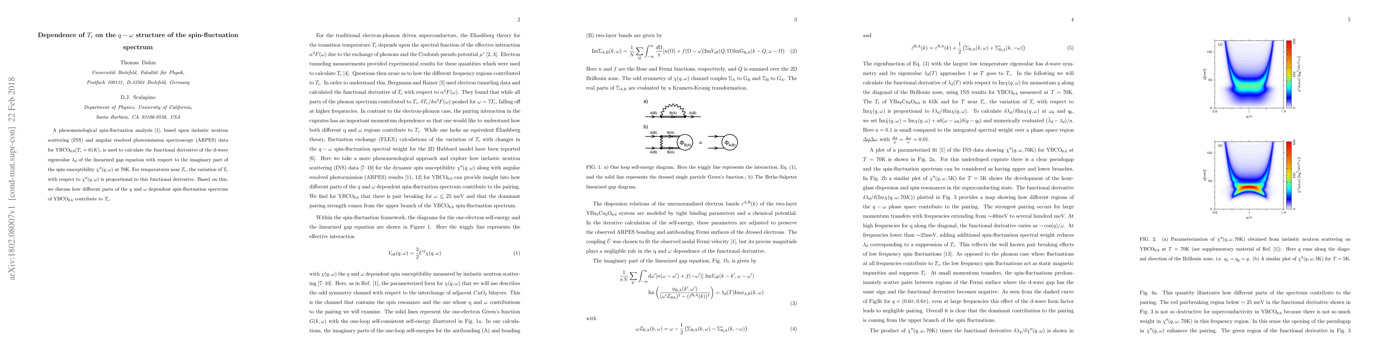 This study utilizes phenomenological spin-fluctuation analysis from INS and ARPES data for YBCO6.6 to calculate the derivative of d-wave eigenvalue λ_d concerning the imaginary part of spin susceptibility χ''(q,ω). It discusses how various q and ω components of YBCO6.6's spin-fluctuation spectrum influence T_c, specifically near its critical temperature.