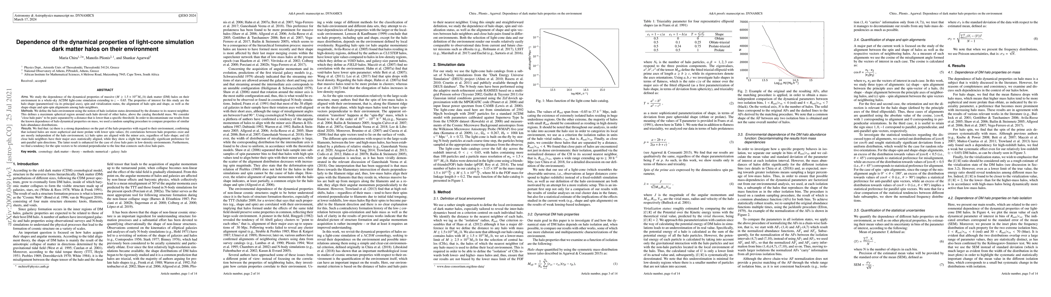 This paper investigates how the dynamical properties of dark matter halos, including shape, spin, and alignment, are influenced by their environment in a $\Lambda$CDM light-cone simulation. Results show that isolated halos are more aspherical and have lower spin values, while close halo pairs tend to align their major axes and exhibit anti-parallel spin directions, especially in low-density environments.