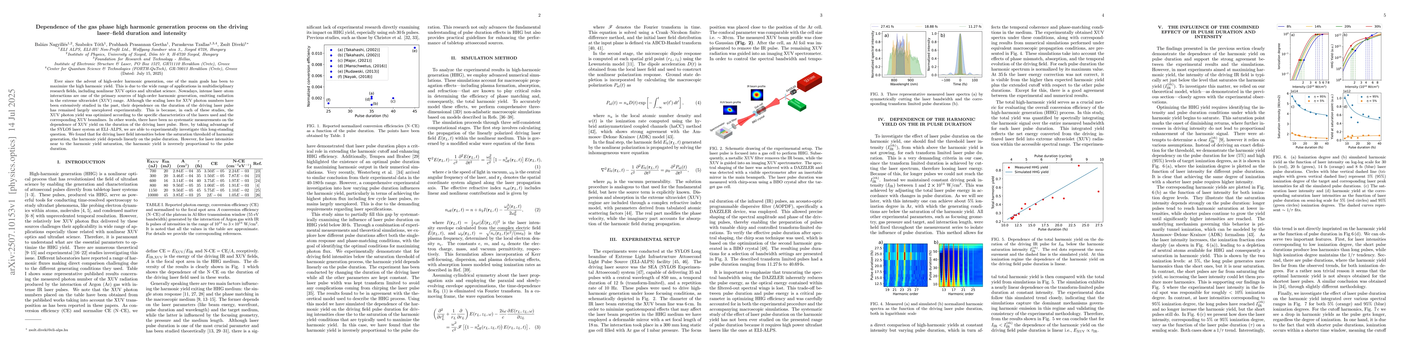 Ever since the advent of high-order harmonic generation, one of the main goals has been to maximize the high harmonic yield. This is due to the wide range of applications in multidisciplinary research fields, including nonlinear XUV optics and ultrafast science. Nowadays, intense laser-atom interactions are one of the primary sources of high-order harmonic generation, emitting radiation in the extreme ultraviolet (XUV) range. Although the scaling laws for XUV photon numbers have been extensively studied in the past, their dependence on the duration of the driving laser pulse has remained largely unexplored experimentally. This is because, in each of these studies, the XUV photon yield was optimized according to the specific characteristics of the lasers used and the corresponding XUV beamlines. In other words, there have been no systematic measurements on the dependence of XUV yield on the duration of the driving laser pulse. Here, by taking advantage of the SYLOS laser system at ELI ALPS, we are able to experimentally investigate this long-standing question. We found that for driving laser field intensities below the saturation threshold of harmonic generation, the harmonic yield depends linearly on the pulse duration. However, for laser intensities near to the harmonic yield saturation, the harmonic yield is inversely proportional to the pulse duration.