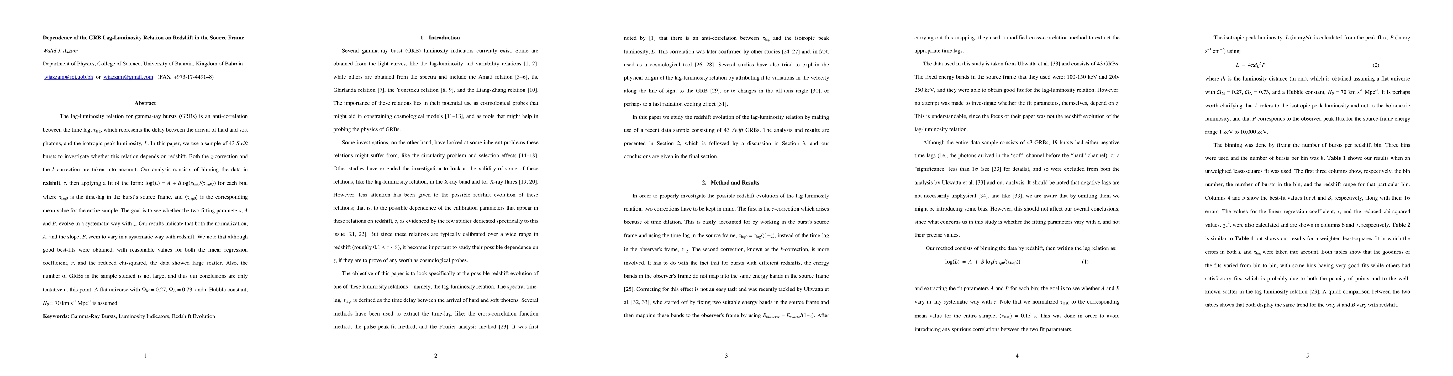 luminosity, L. In this paper, we use a sample of 43 Swift bursts to investigate