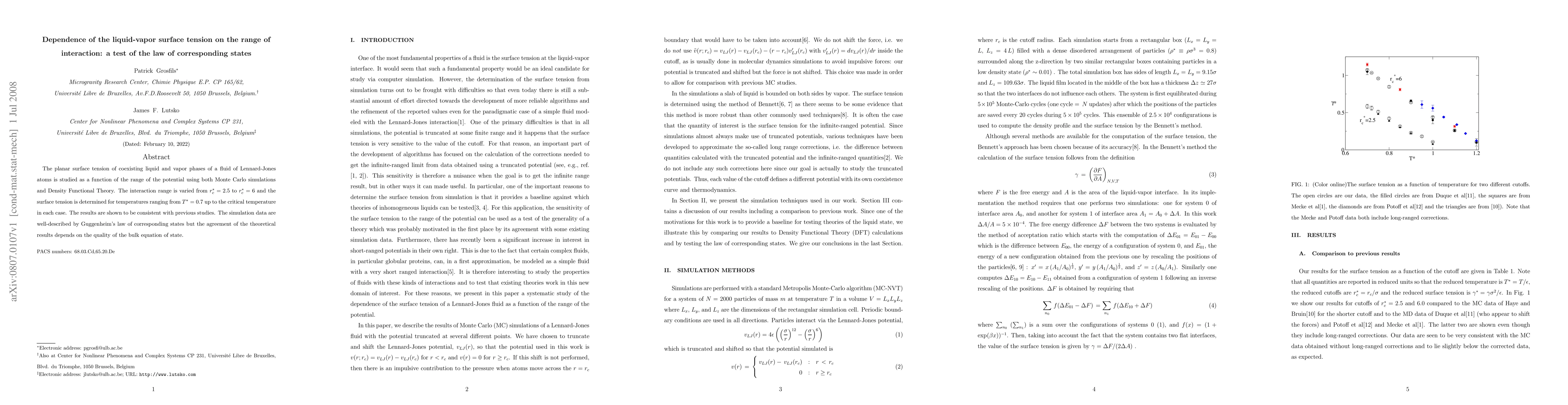 The planar surface tension of coexisting liquid and vapor phases of a fluid of Lennard-Jones atoms is studied as a function of the range of the potential using both Monte Carlo simulations and Density Functional Theory. The interaction range is varied from $r_c^* = 2.5$ to $r_c^* = 6$ and the surface tension is determined for temperatures ranging from $T^* = 0.7$ up to the critical temperature in each case. The results are shown to be consistent with previous studies. The simulation data are well-described by Guggenheim's law of corresponding states but the agreement of the theoretical results depends on the quality of the bulk equation of state.