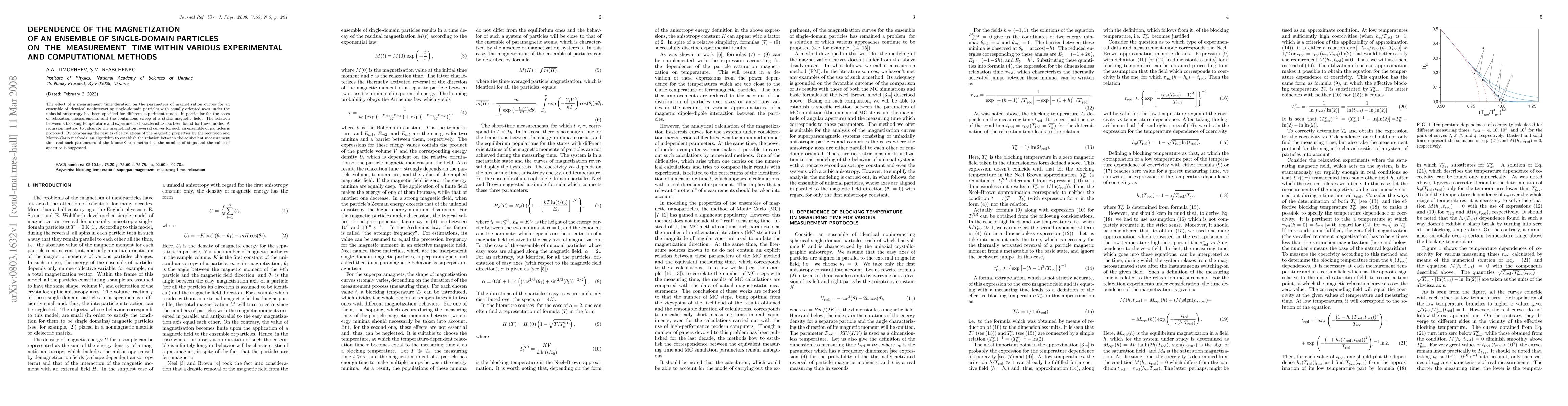 The effect of a measurement time duration on the parameters of magnetization curves for an ensemble of identical noninteracting single-domain particles with equally oriented axes under the uniaxial anisotropy has been specifed for different experiment modes, in particular for the cases of relaxation measurements and the continuous sweep of a static magnetic field. The relation between a blocking temperature and experiment characteristics has been found for these modes. A recursion method to calculate the magnetization reversal curves for such an ensemble of particles is proposed. By comparing the results of calculations of the magnetic properties by the recursion and Monte-Carlo methods, an algorithm to establish the relation between the equivalent measurement time and such parameters of the Monte-Carlo method as the number of steps and the value of aperture is suggested.