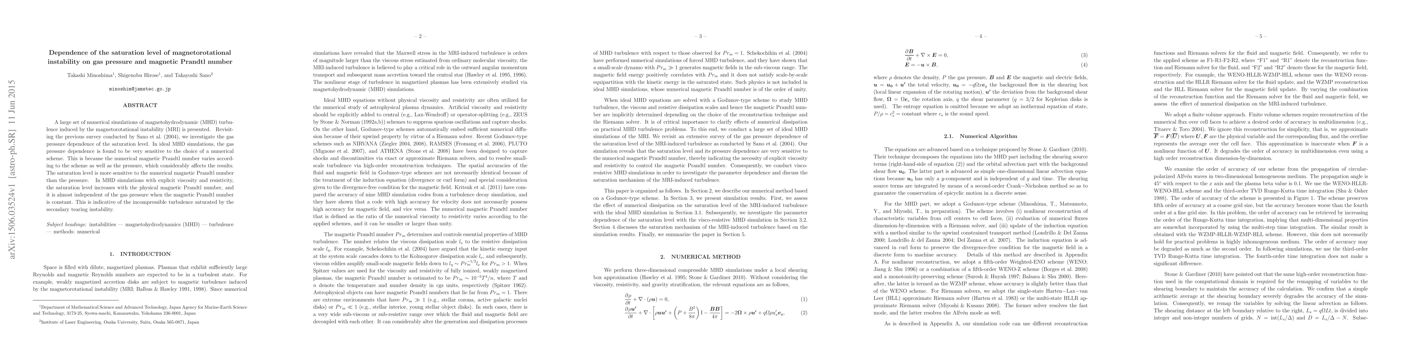 This paper investigates the saturation level of magnetorotational instability (MRI) in MHD turbulence, finding that it is more sensitive to the numerical magnetic Prandtl number than to gas pressure. In ideal MHD simulations, the gas pressure dependence is highly dependent on the numerical scheme used, due to variations in the numerical magnetic Prandtl number.