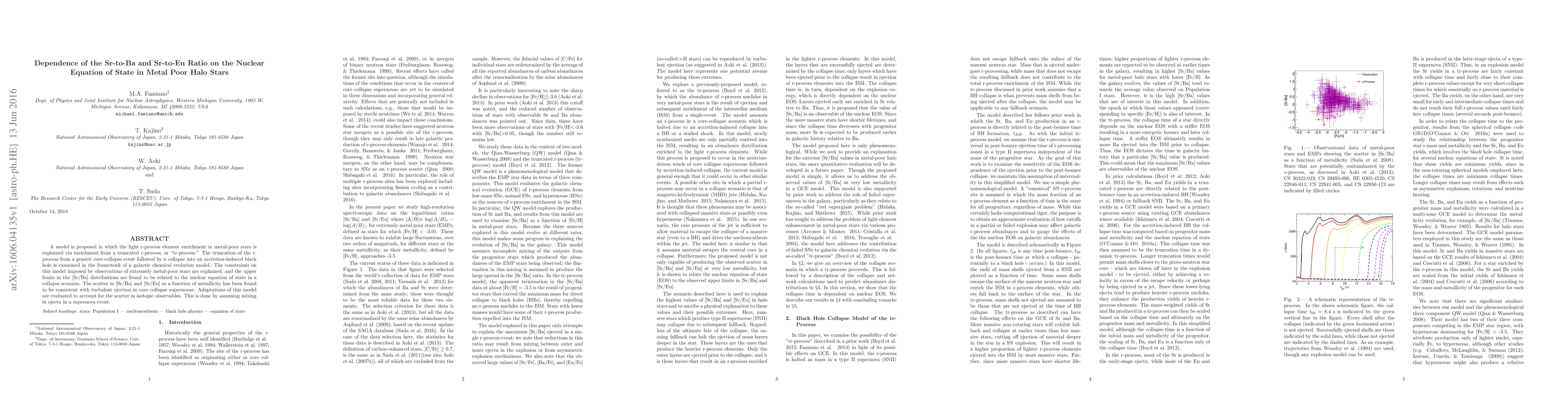 This paper proposes a model explaining the enrichment of light r-process elements in metal-poor halo stars via a truncated r-process, linking the Sr-to-Ba and Sr-to-Eu ratios to the nuclear equation of state in core-collapse scenarios. The study finds that the observed scatter in these ratios is consistent with turbulent ejection in core-collapse supernovae.