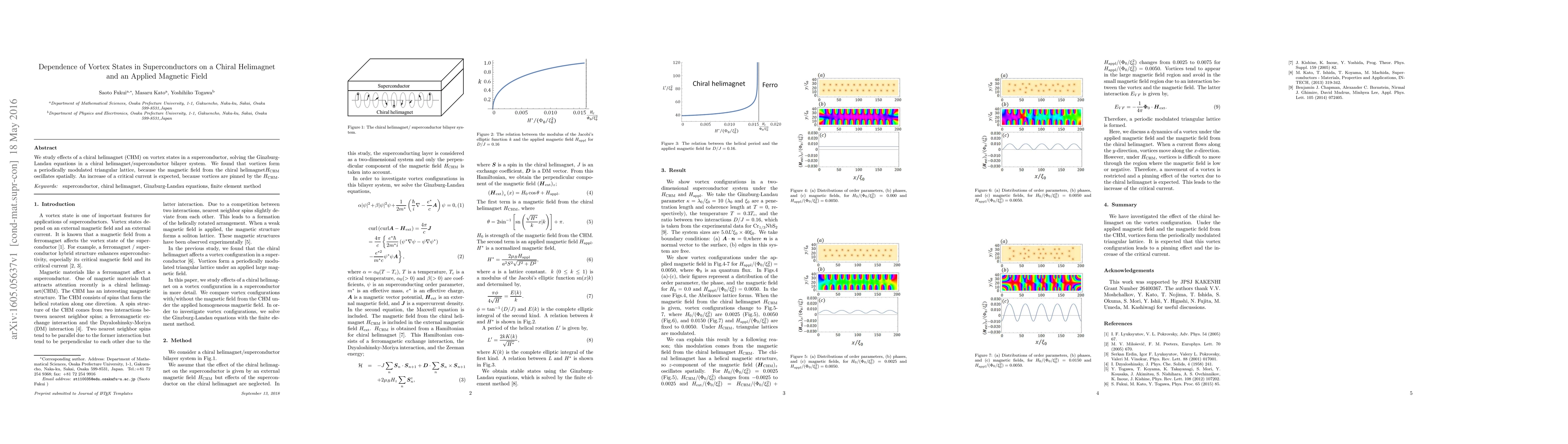 This study investigates how the presence of a chiral helimagnet influences vortex states in superconductors, revealing that vortices arrange into a periodically modulated triangular lattice due to the spatially oscillating magnetic field from the helimagnet. The pinning effect of the helimagnet's magnetic field is expected to increase the critical current.