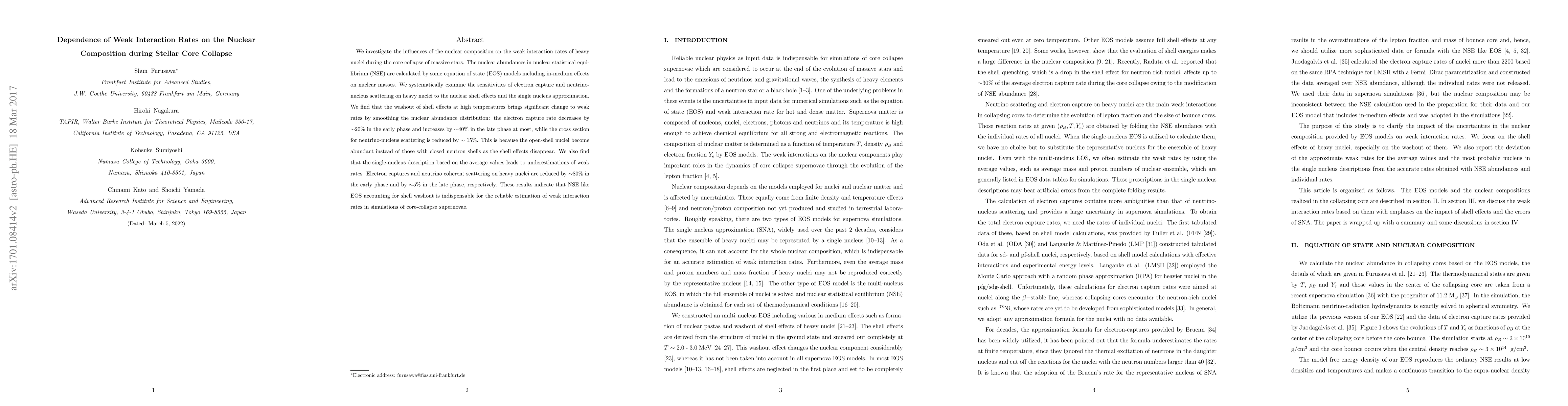 Research investigates how nuclear composition affects weak interaction rates in stars during collapse, finding that shell effects impact electron capture and neutrino scattering, leading to significant changes in rate values.