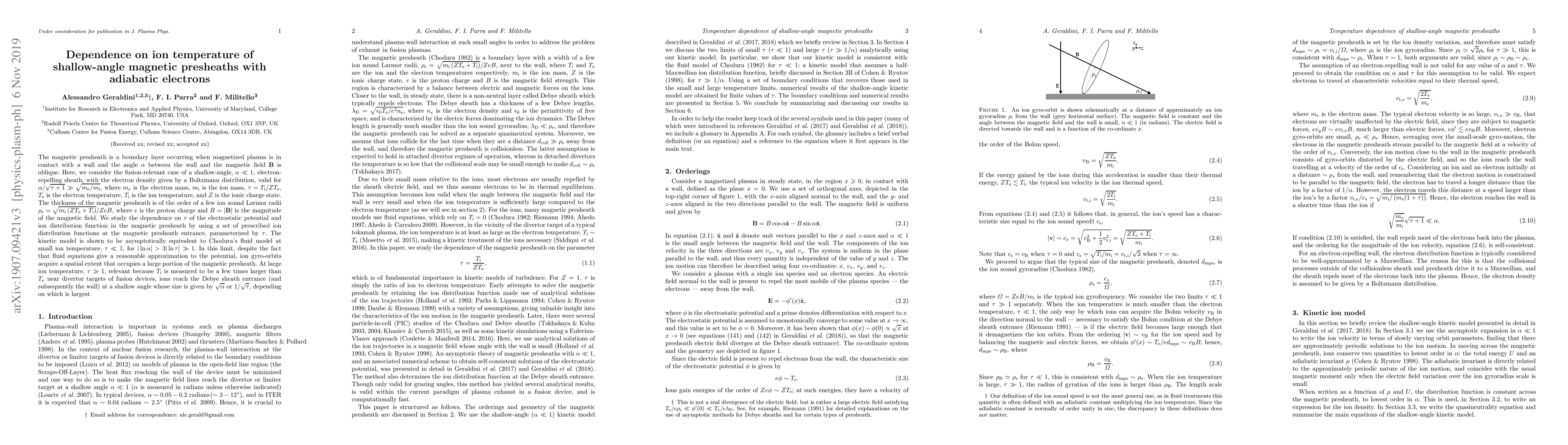 This paper investigates the magnetic presheath's behavior in magnetized plasma near a wall with oblique magnetic field angles, focusing on the dependence of the sheath on ion temperature. It finds that ion gyro-orbits dominate the presheath at low ion temperatures, while higher ion temperatures lead to ions reaching the wall at shallow angles.