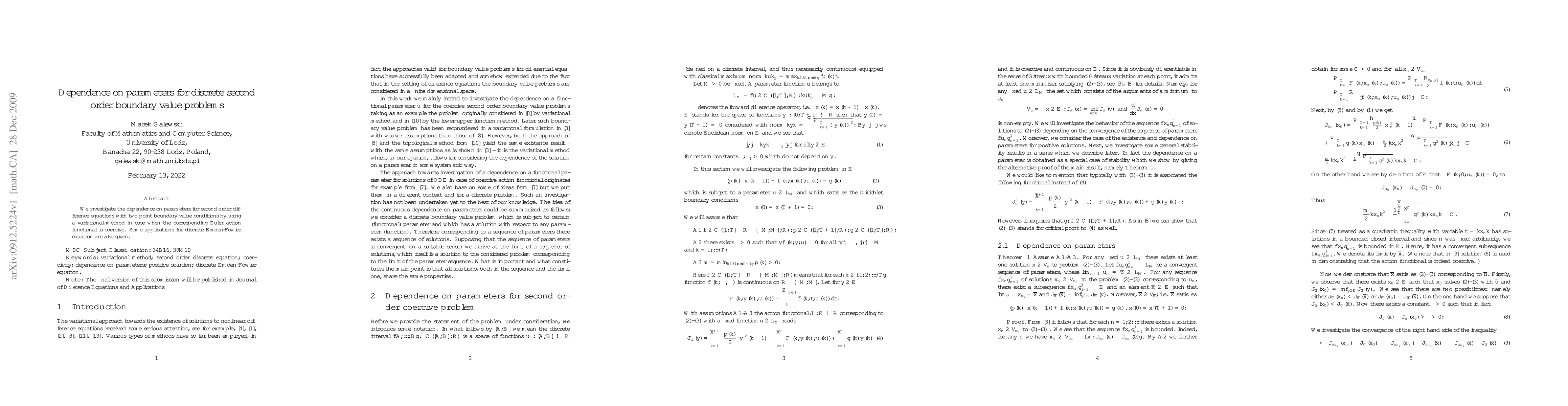 Researchers used a variational method to study how changes in parameters affect second-order difference equations with boundary value conditions. They found applications for these methods in solving the discrete Emden-Fowler equation.