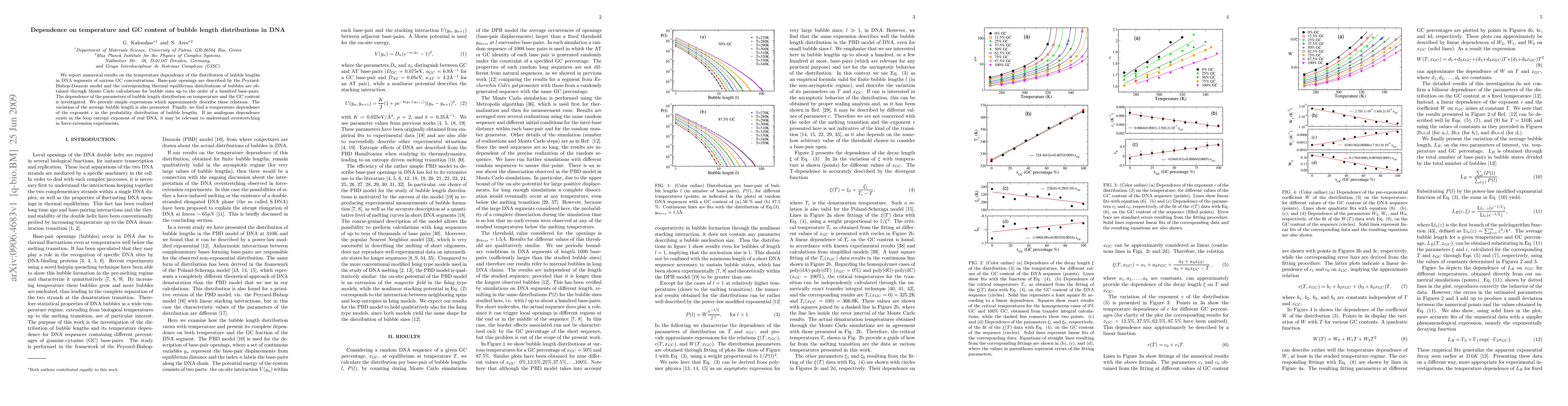 This paper investigates the temperature dependence of bubble length distributions in DNA segments with varying guanine-cytosine (GC) content using the Peyrard-Bishop-Dauxois model and Monte Carlo simulations. It finds a temperature-dependent exponent in the bubble length distribution and suggests its relevance to understanding overstretching in DNA force-extension experiments.