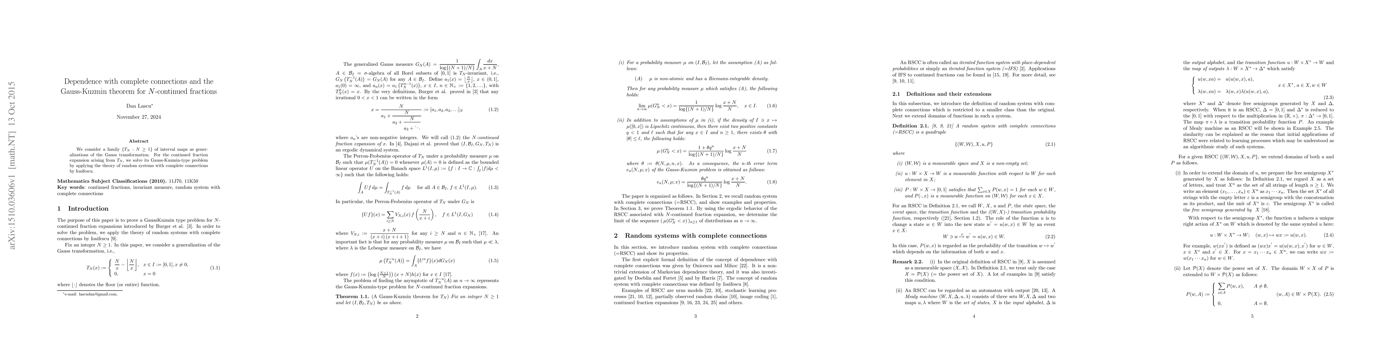 This paper generalizes the Gauss transformation to a family of interval maps $\{T_N\}$ and solves the Gauss-Kuzmin-type problem for their associated N-continued fractions using Iosifescu's theory of random systems with complete connections. The focus is on the dependence structure within the continued fraction expansions.