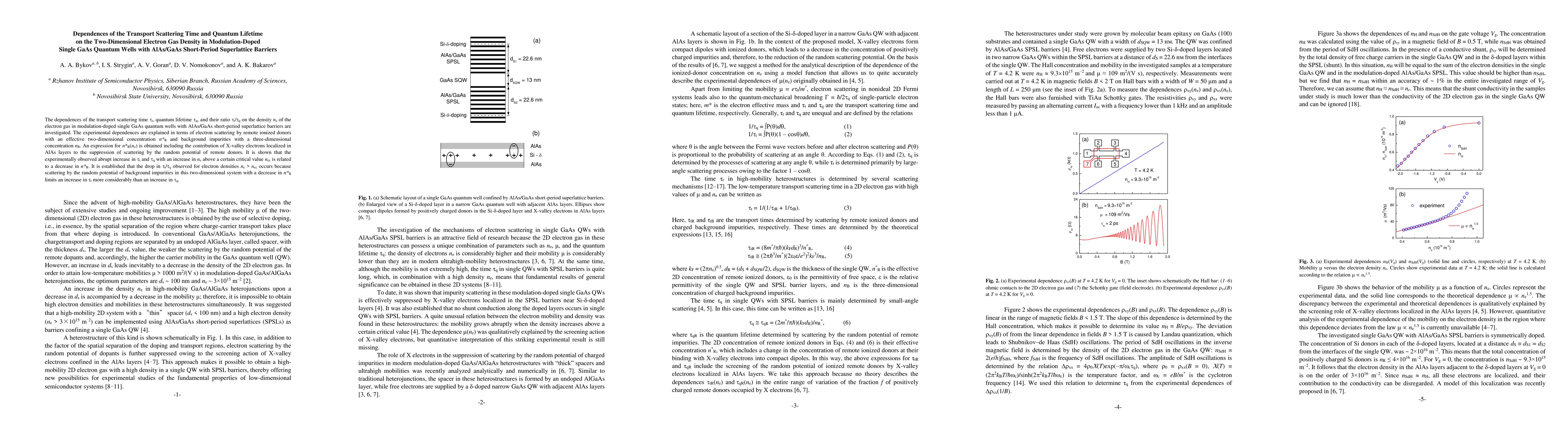 The dependences of the transport scattering time {\tau}t, quantum lifetime {\tau}q, and their ratio {\tau}t/{\tau}q on the density ne of the electron gas in modulation-doped single GaAs quantum wells with AlAs/GaAs short-period super-lattice barriers are investigated. The experimental dependences are explained in terms of electron scattering by remote ionized donors with an effective two-dimensional concentration n*R and background impurities with a three-dimensional concentration nB. An expression for n*R(ne) is obtained including the contribution of X-valley electrons localized in AlAs layers to the suppression of scattering by the random potential of remote donors. It is shown that the experimentally observed abrupt increase in {\tau}t and {\tau}q with an increase in ne above a certain critical value nec is related to a decrease in n*R. It is established that the drop in {\tau}t/{\tau}q observed for electron densities ne > nec occurs because scattering by the random potential of background impurities in this two-dimensional system with a decrease in n*R limits an increase in {\tau}t more considerably than an increase in {\tau}q.