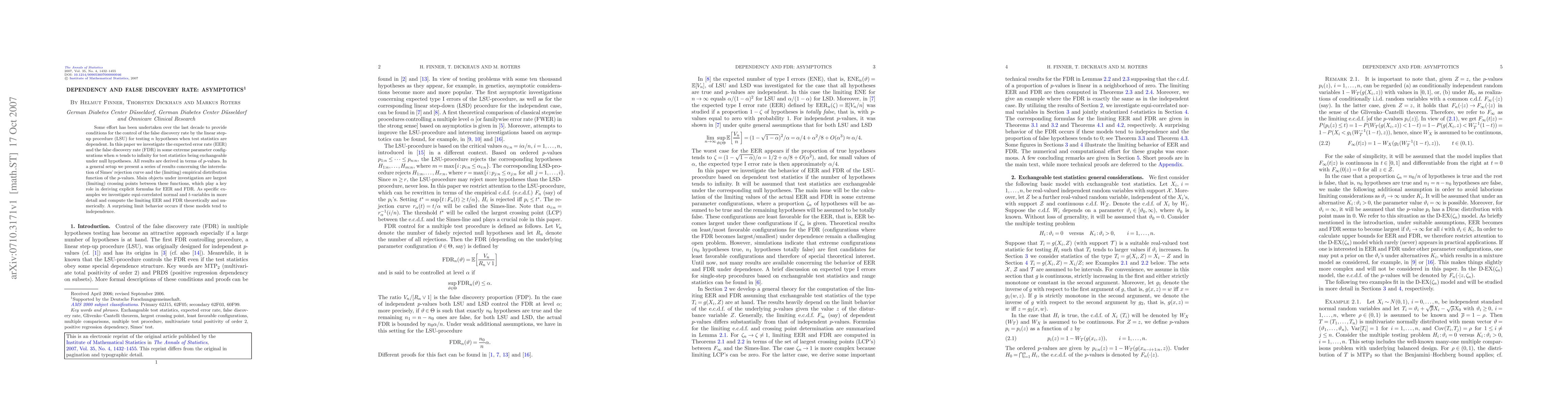 This paper examines the false discovery rate (FDR) and expected error rate (EER) under dependency in hypothesis testing, focusing on the asymptotic behavior as the number of hypotheses $n$ tends to infinity. It explores the interplay between Simes' rejection curve and the empirical distribution of $p$-values, deriving explicit formulas for EER and FDR, and investigates equi-correlated normal and $t$-variables, revealing surprising limit behaviors towards independence.