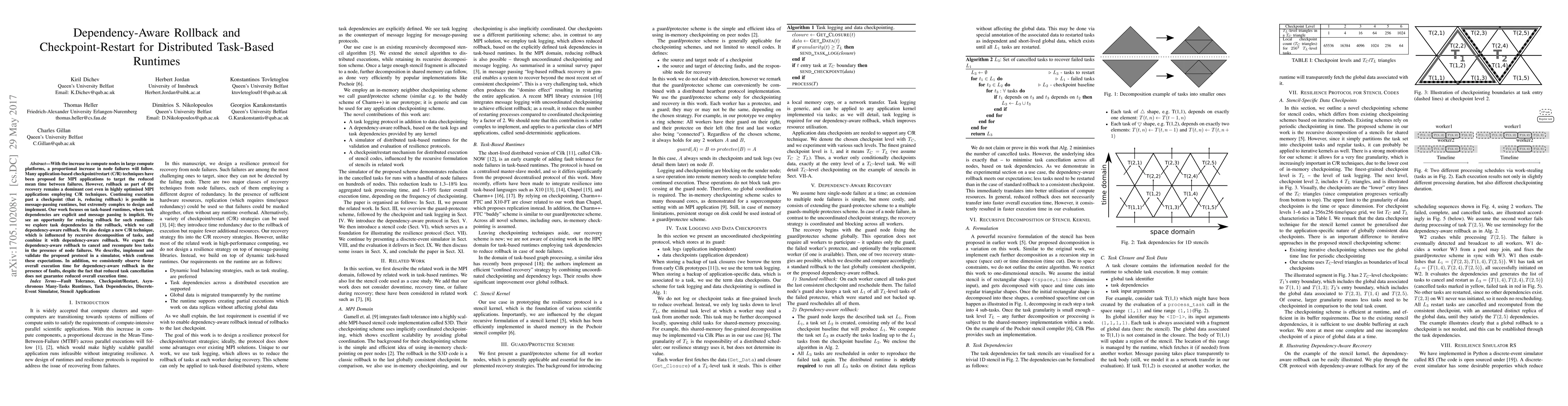 This paper proposes a dependency-aware rollback and checkpoint-restart technique for task-based runtimes to reduce recovery costs from node failures. The approach leverages explicit task dependencies to minimize rollback and recomputation, leading to faster overall execution times in fault scenarios, as demonstrated in a simulator.