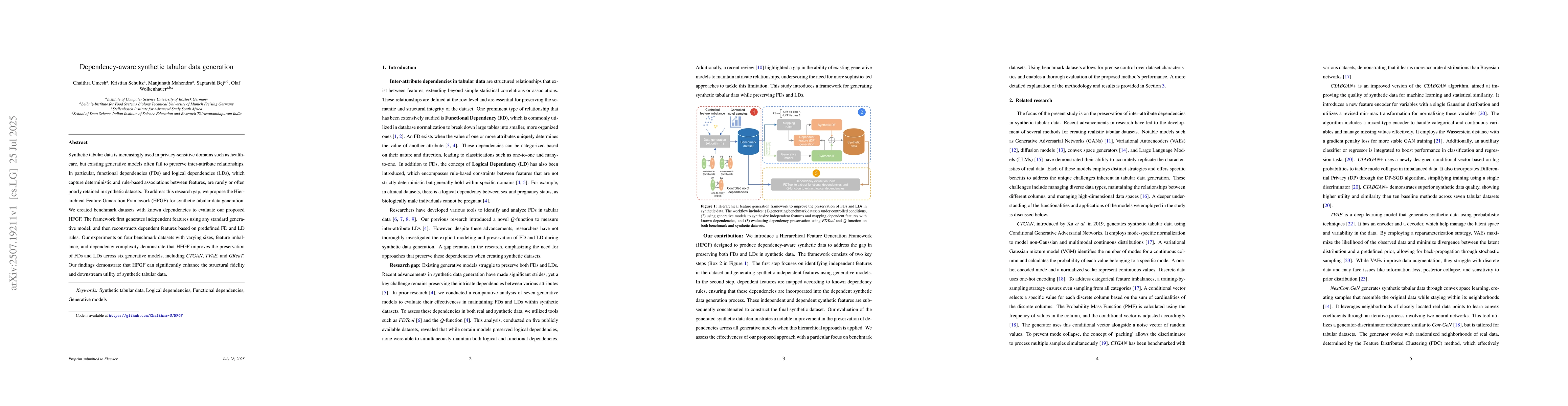 Synthetic tabular data is increasingly used in privacy-sensitive domains such as health care, but existing generative models often fail to preserve inter-attribute relationships. In particular, functional dependencies (FDs) and logical dependencies (LDs), which capture deterministic and rule-based associations between features, are rarely or often poorly retained in synthetic datasets. To address this research gap, we propose the Hierarchical Feature Generation Framework (HFGF) for synthetic tabular data generation. We created benchmark datasets with known dependencies to evaluate our proposed HFGF. The framework first generates independent features using any standard generative model, and then reconstructs dependent features based on predefined FD and LD rules. Our experiments on four benchmark datasets with varying sizes, feature imbalance, and dependency complexity demonstrate that HFGF improves the preservation of FDs and LDs across six generative models, including CTGAN, TVAE, and GReaT. Our findings demonstrate that HFGF can significantly enhance the structural fidelity and downstream utility of synthetic tabular data.