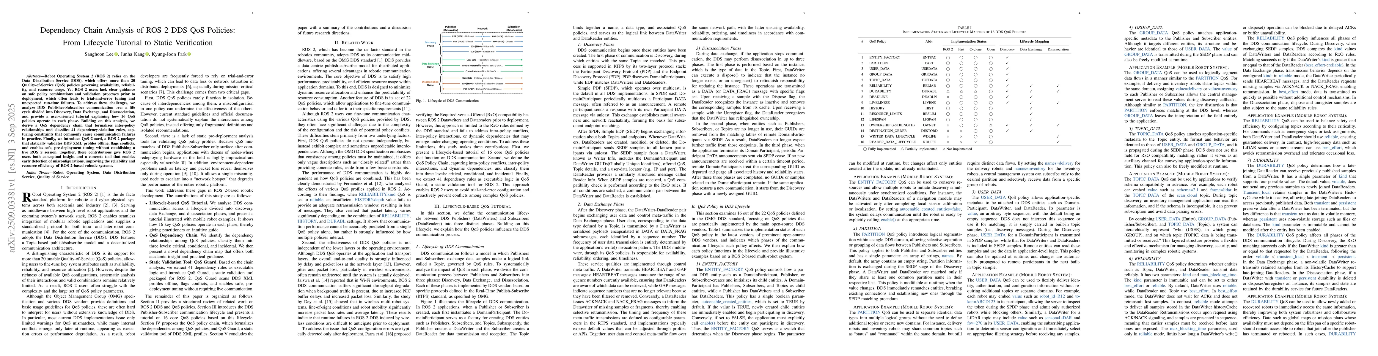 Robot Operating System 2 (ROS 2) relies on the Data Distribution Service (DDS), which offers more than 20 Quality of Service (QoS) policies governing availability, reliability, and resource usage. Yet ROS 2 users lack clear guidance on safe policy combinations and validation processes prior to deployment, which often leads to trial-and-error tuning and unexpected runtime failures. To address these challenges, we analyze DDS Publisher-Subscriber communication over a life cycle divided into Discovery, Data Exchange, and Disassociation, and provide a user oriented tutorial explaining how 16 QoS policies operate in each phase. Building on this analysis, we derive a QoS dependency chain that formalizes inter-policy relationships and classifies 41 dependency violation rules, capturing constraints that commonly cause communication failures in practice. Finally, we introduce QoS Guard, a ROS 2 package that statically validates DDS XML profiles offline, flags conflicts, and enables safe, predeployment tuning without establishing a live ROS 2 session. Together, these contributions give ROS 2 users both conceptual insight and a concrete tool that enables early detection of misconfigurations, improving the reliability and resource efficiency of ROS 2 based robotic systems.