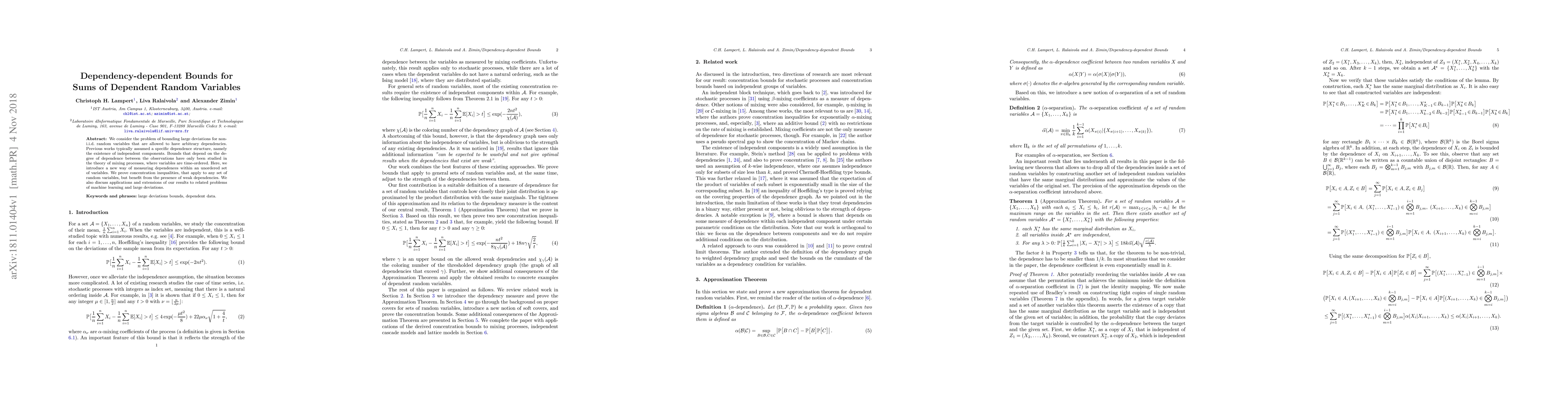 We consider the problem of bounding large deviations for non-i.i.d. random variables that are allowed to have arbitrary dependencies. Previous works typically assumed a specific dependence structure, namely the existence of independent components. Bounds that depend on the degree of dependence between the observations have only been studied in the theory of mixing processes, where variables are time-ordered. Here, we introduce a new way of measuring dependences within an unordered set of variables. We prove concentration inequalities, that apply to any set of random variables, but benefit from the presence of weak dependencies. We also discuss applications and extensions of our results to related problems of machine learning and large deviations.
