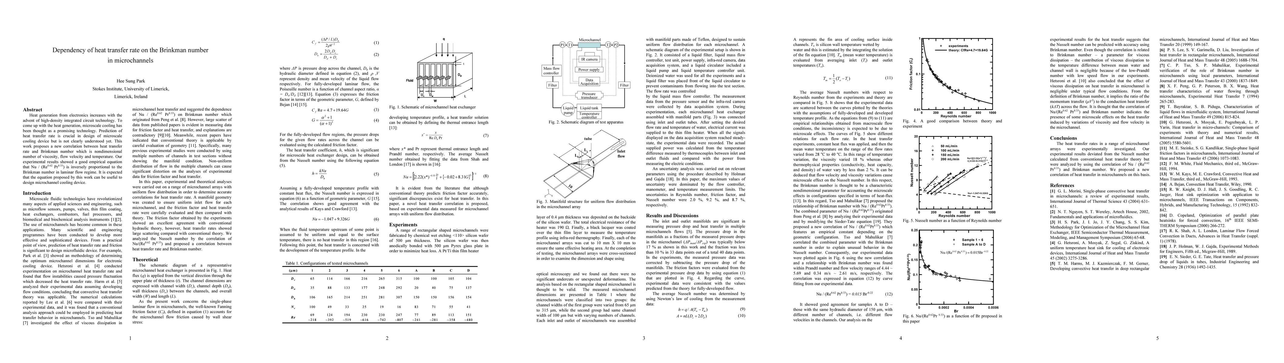 Heat generation from electronics increases with the advent of high-density integrated circuit technology. To come up with the heat generation, microscale cooling has been thought as a promising technology. Prediction of heat transfer rate is crucial in design of microscale cooling device but is not clearly understood yet. This work proposes a new correlation between heat transfer rate and Brinkman number which is nondimensional number of viscosity, flow velocity and temperature. It is expected that the equation proposed by this work can be useful to design microchannel cooling device.