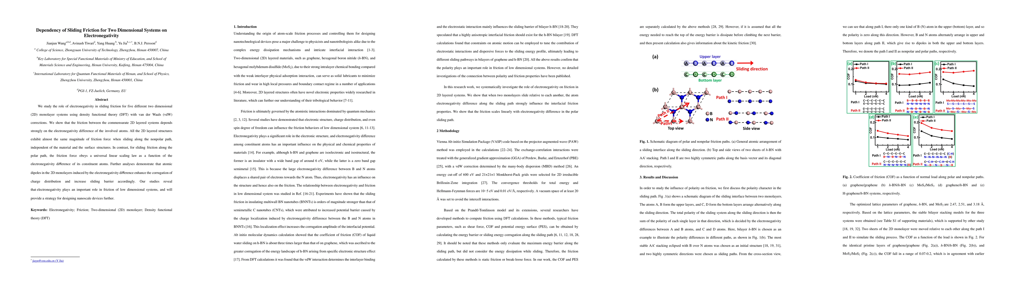 This paper investigates how electronegativity influences sliding friction in five 2D monolayer systems using density functional theory, revealing that friction varies significantly with electronegativity differences along polar paths. The study highlights the role of atomic dipoles induced by electronegativity in enhancing charge distribution corrugation and sliding barriers.