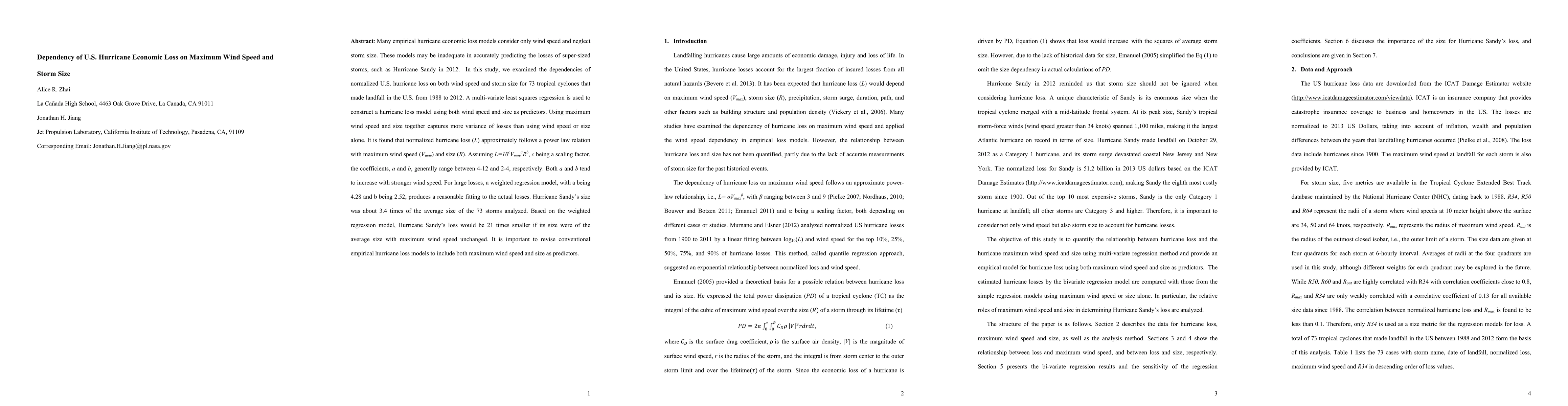 A study found that hurricane economic loss is better predicted when considering both wind speed and storm size, rather than just one factor. Using a weighted regression model, researchers showed that reducing a storm's size by 3.4 times would reduce its losses by 21 times.