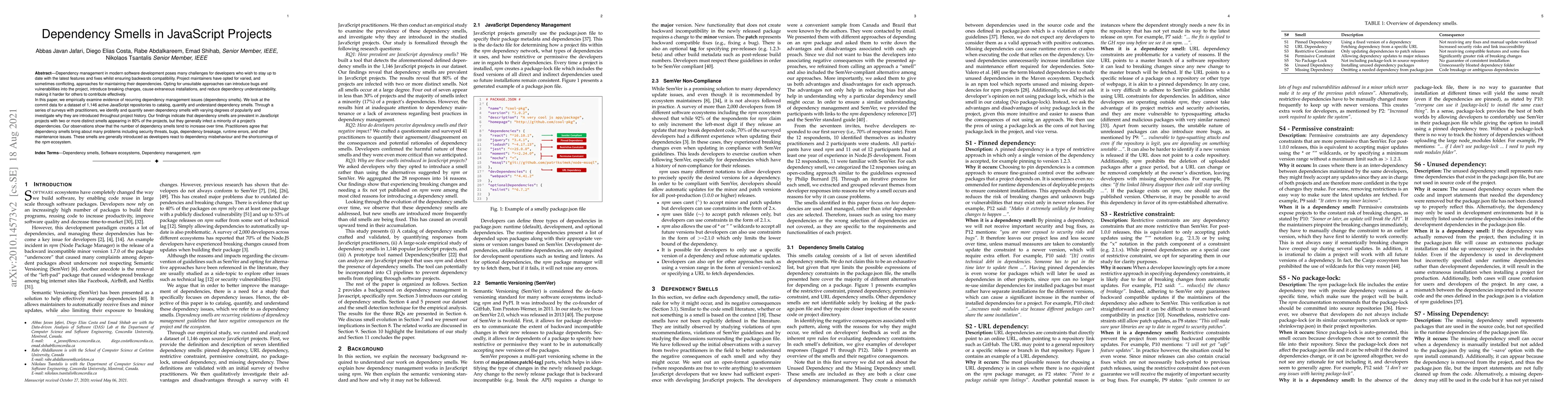 This paper investigates recurring dependency management issues (dependency smells) in JavaScript projects, analyzing commit data from 1,146 active repositories and practitioner surveys to identify seven prevalent dependency smells. Findings reveal that these smells are common, causing security threats, bugs, and maintenance issues, often introduced due to the challenges of the npm ecosystem.