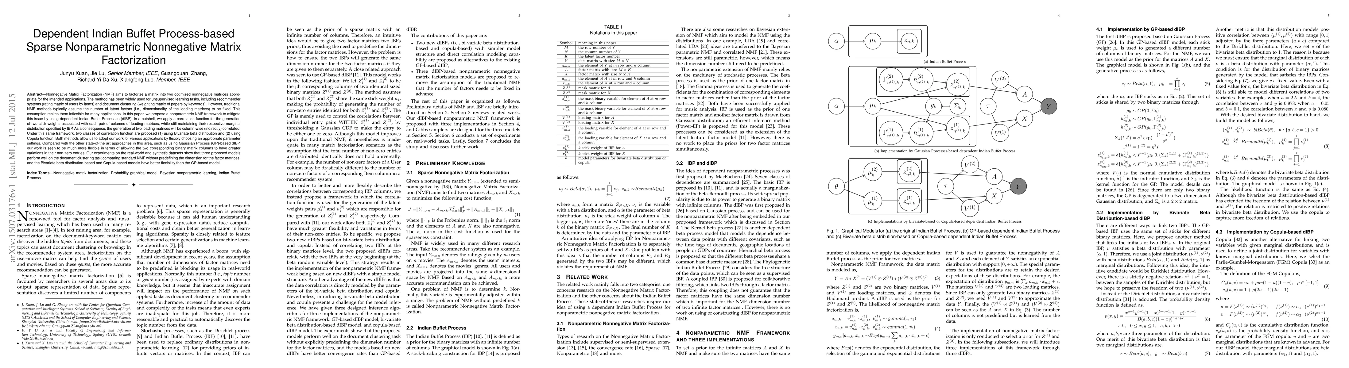 Researchers propose a new nonparametric NMF framework using dependent Indian Buffet Processes to address dimensionality issues, achieving better flexibility and performance in document clustering tasks.