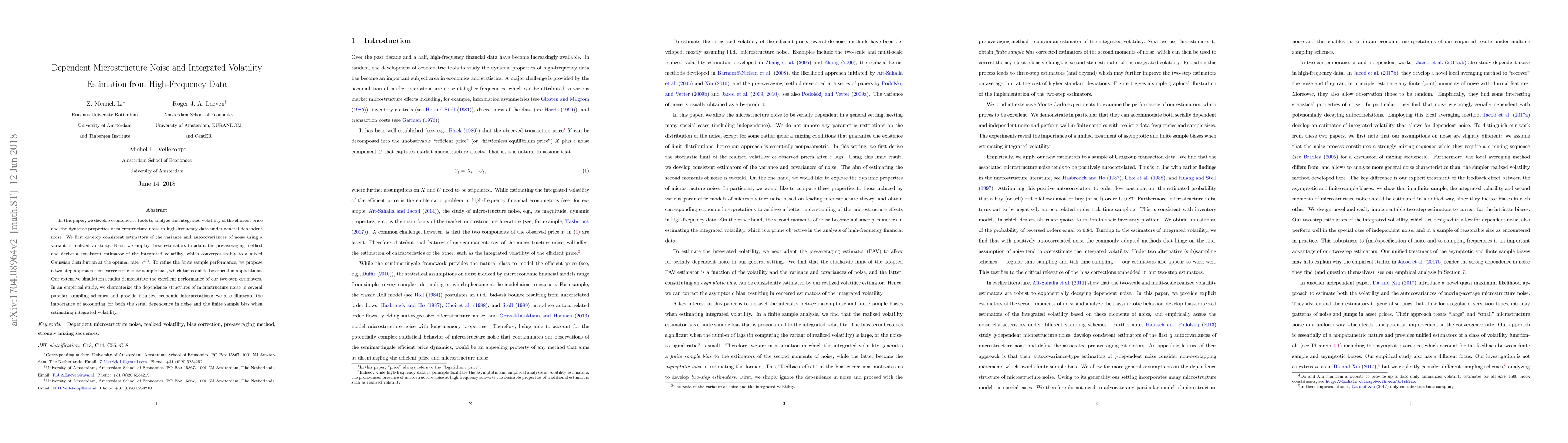 This paper develops econometric methods to estimate integrated volatility and microstructure noise in high-frequency data, focusing on dependent noise structures. It proposes a two-step estimator that corrects for finite sample bias and demonstrates its superior performance through simulations and empirical analysis.